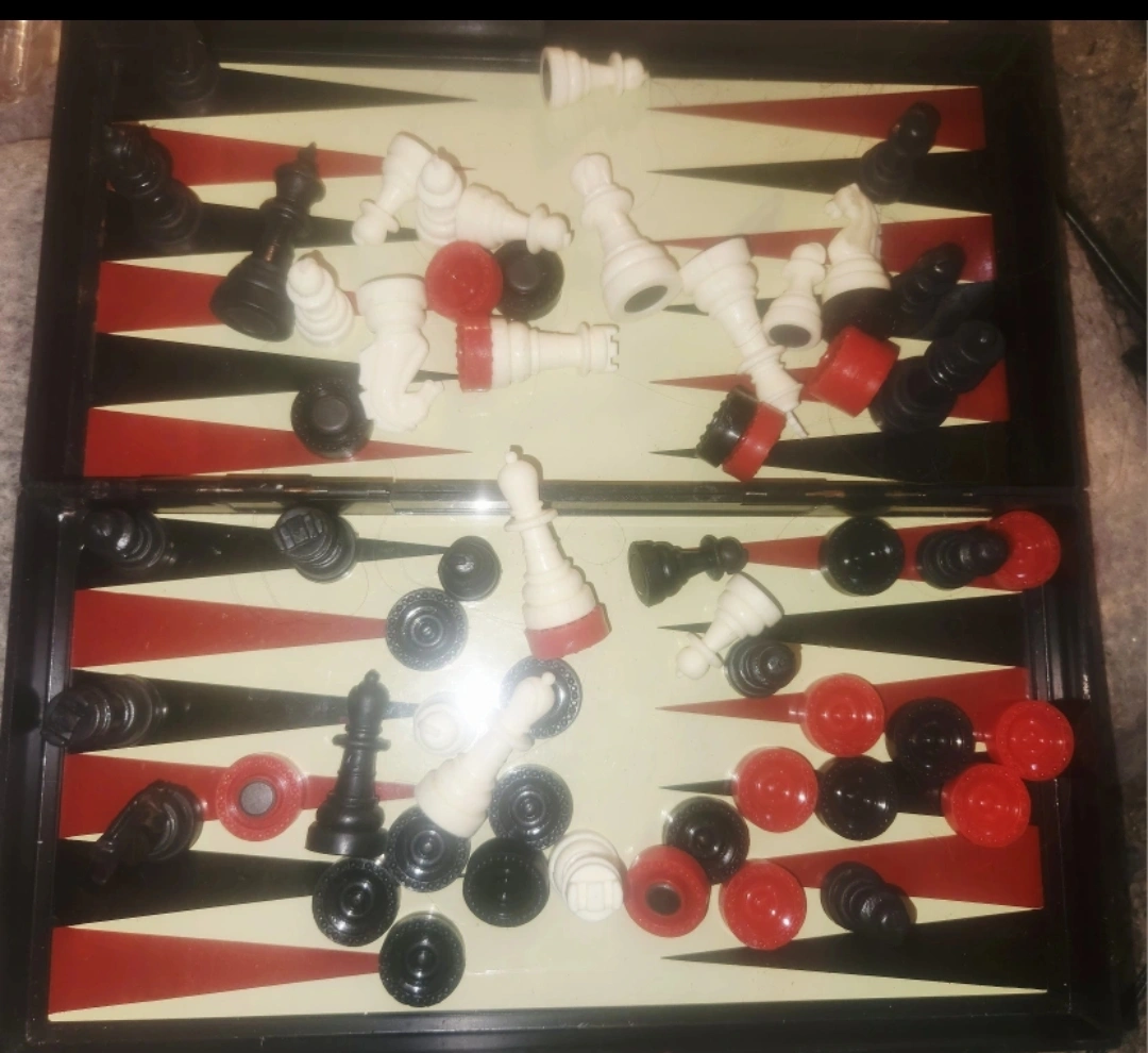 590Giving a chess and backgammon set! It includes all the pieces for both games. Perfect for family game night or challenging a friend to a match. Magnetic. Pick up only.