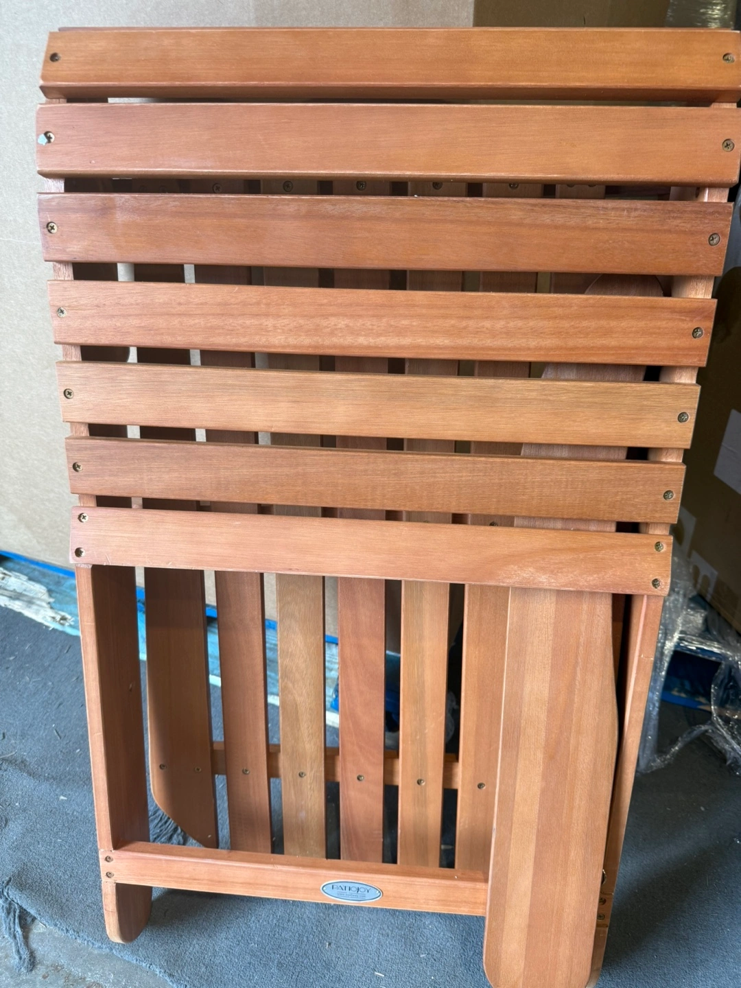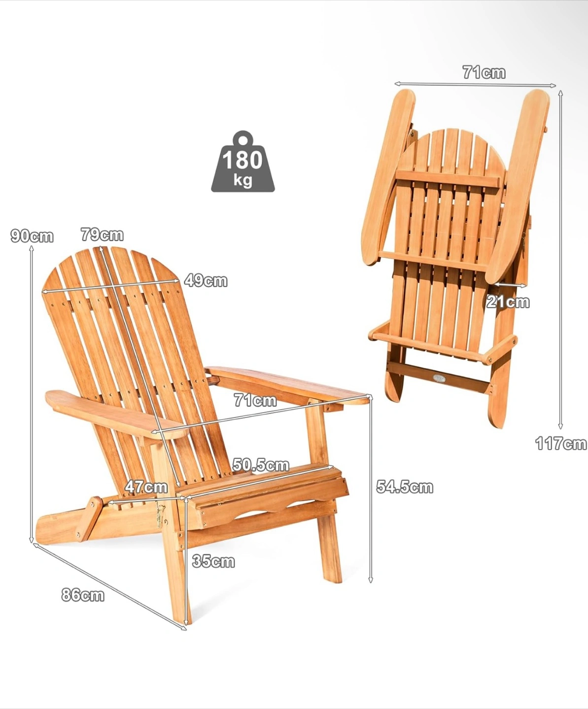 75Featuring the ergonomic backrest, wide armrests and curved seat, this outdoor Adirondack chair with multiple slats not only fits your body cured to release body fatigue, but also promotes air circulation. This ergonomic Adirondack chair is crafted of high quality eucalyptus wood with burr-free surface, which ensures long service time and provides smooth touch. This wood Adirondack chair can be folded when out of use. Overall dimension of unfolding: 71 cm x 86 cm x 90 cm (L x W x H), overall dimension of folding: 71 cm x 21 cm x 117 cm (L x W x H). Pick up in Mississauga near the intersection of Highways 401 and 403