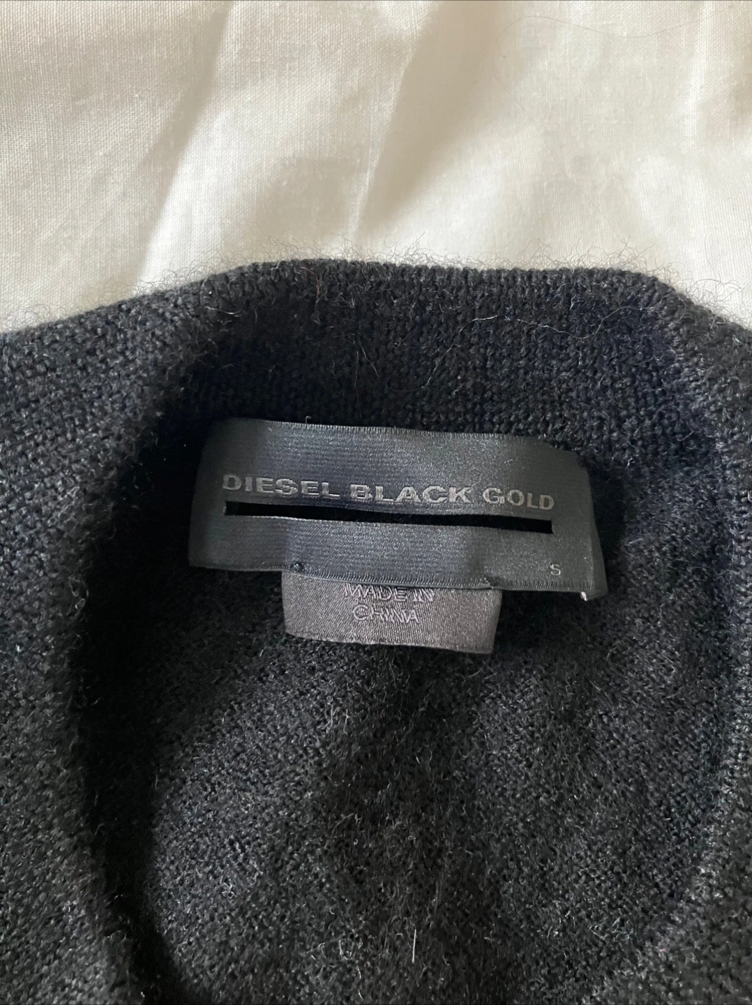 Selling a Diesel Black Gold sweater in black. It's a size small and has a unique design on the front. The material is soft and comfortable. In great condition.