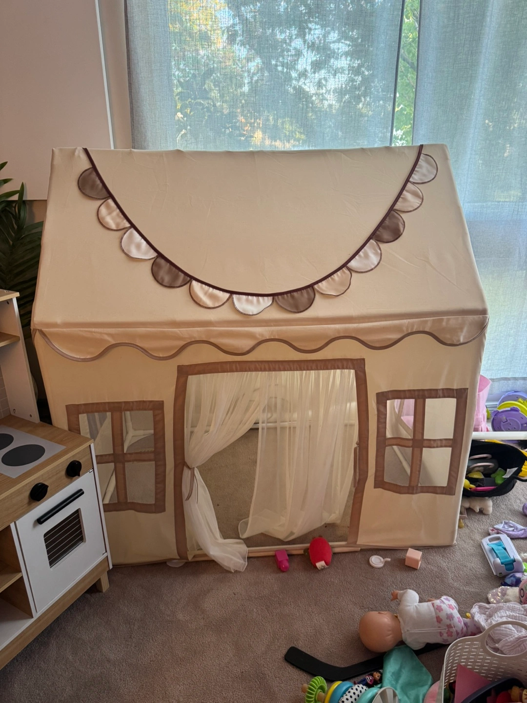 15Selling a gently used kids play tent! It's in great condition and perfect for indoor fun. The tent features a cute design with windows and a curtained entrance. It's a great space for kids to play, read, or just relax
