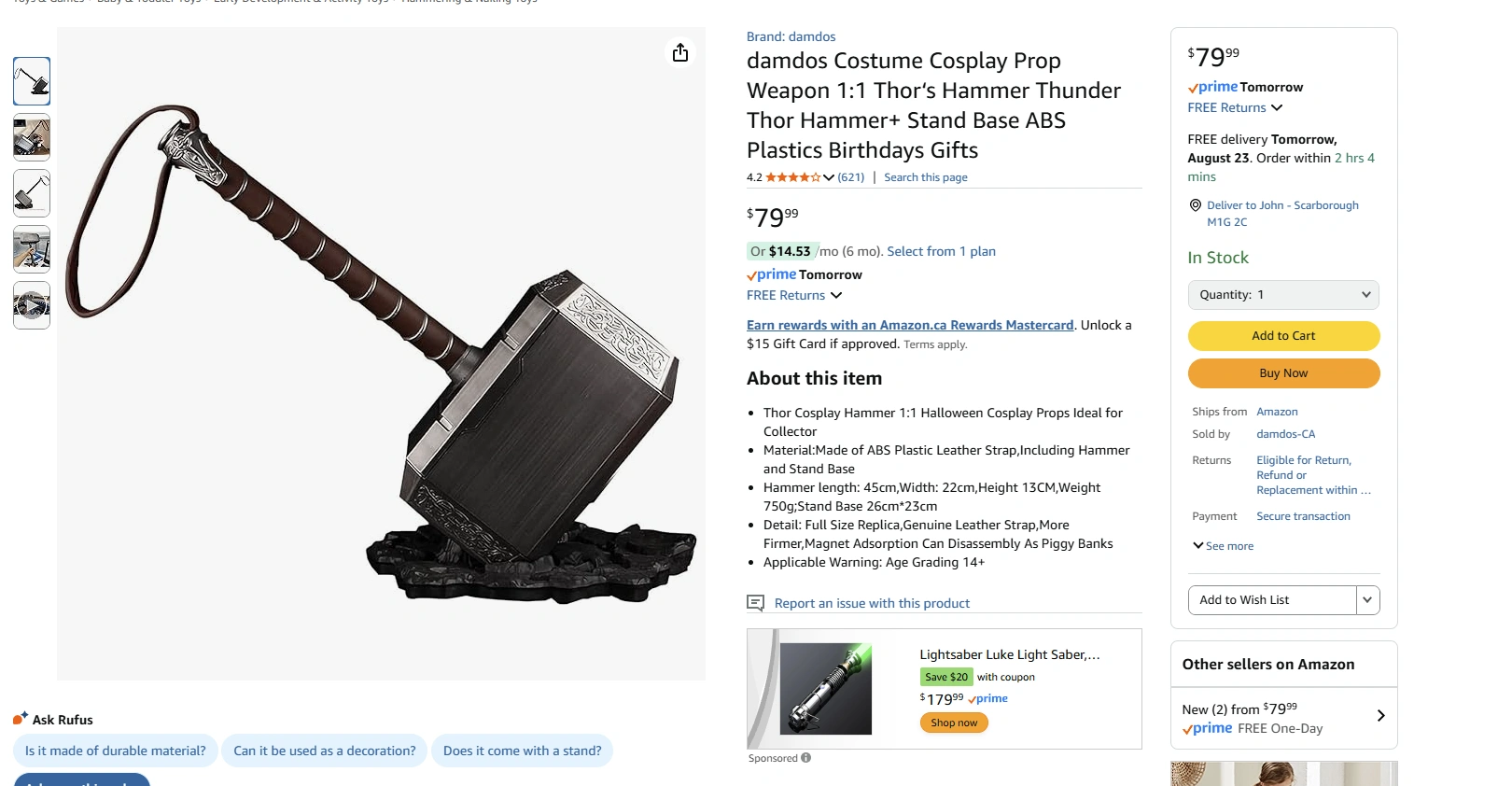 Costume Cosplay Prop Weapon 1:1 Thor‘s Hammer Thunder Thor Hammer + Stand Base ABS Plastics Birthdays Gifts this hammer is hollow so it;s light. perfect for display only or additional to your marvel collection