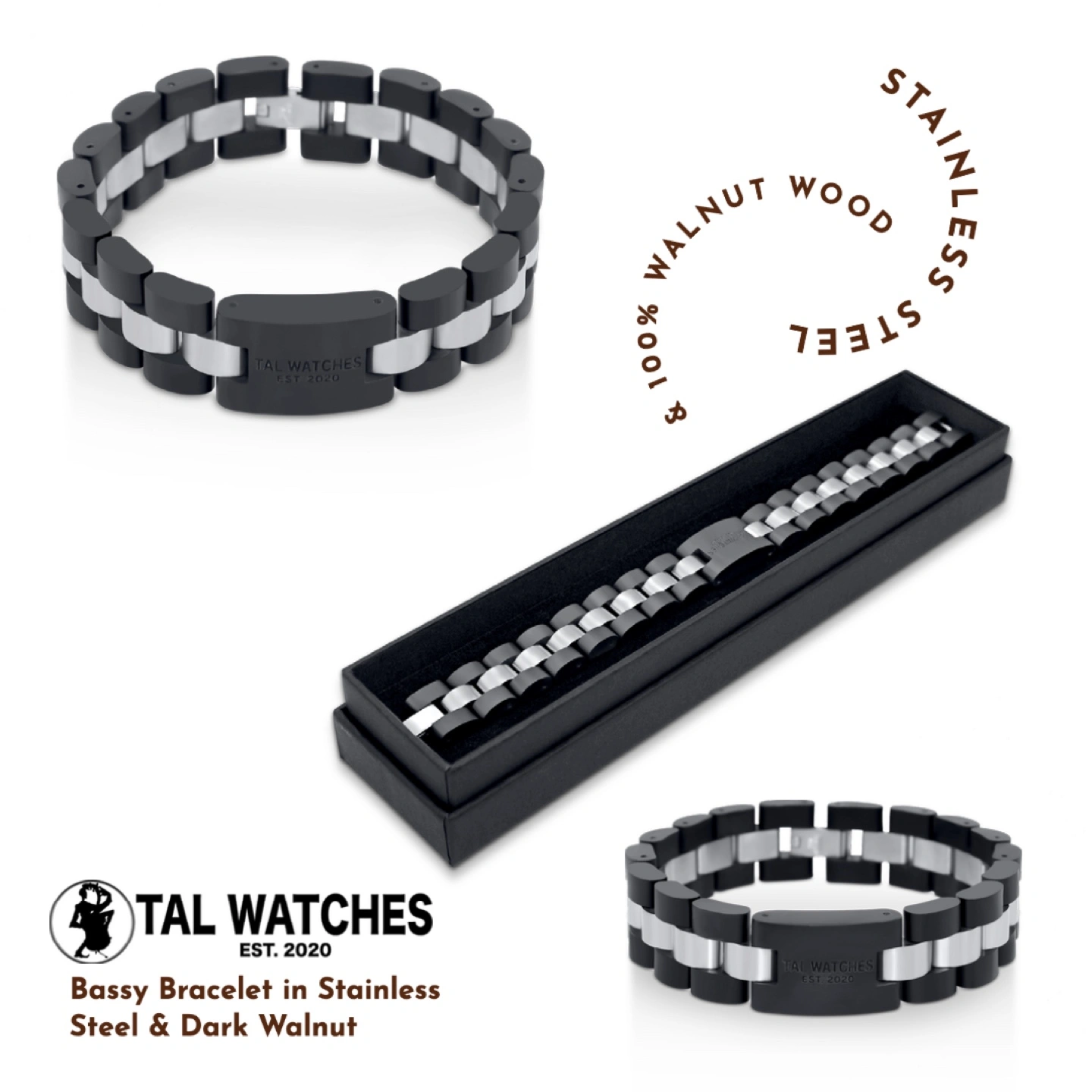 TAL Watches Bassy Bracelet - Stainless Steel & Dark Walnut