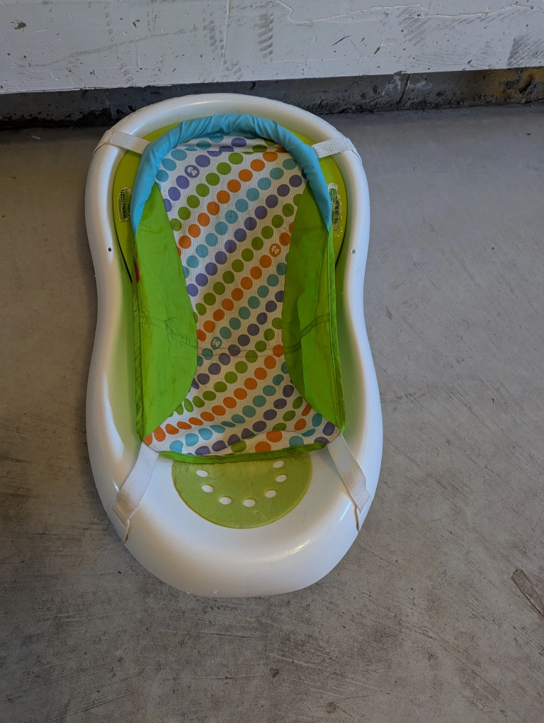 28Selling a baby bathtub from Fisher-Price. It has a sling for newborns and a supportive seat for older babies. It's in great condition and ready for its next little one!