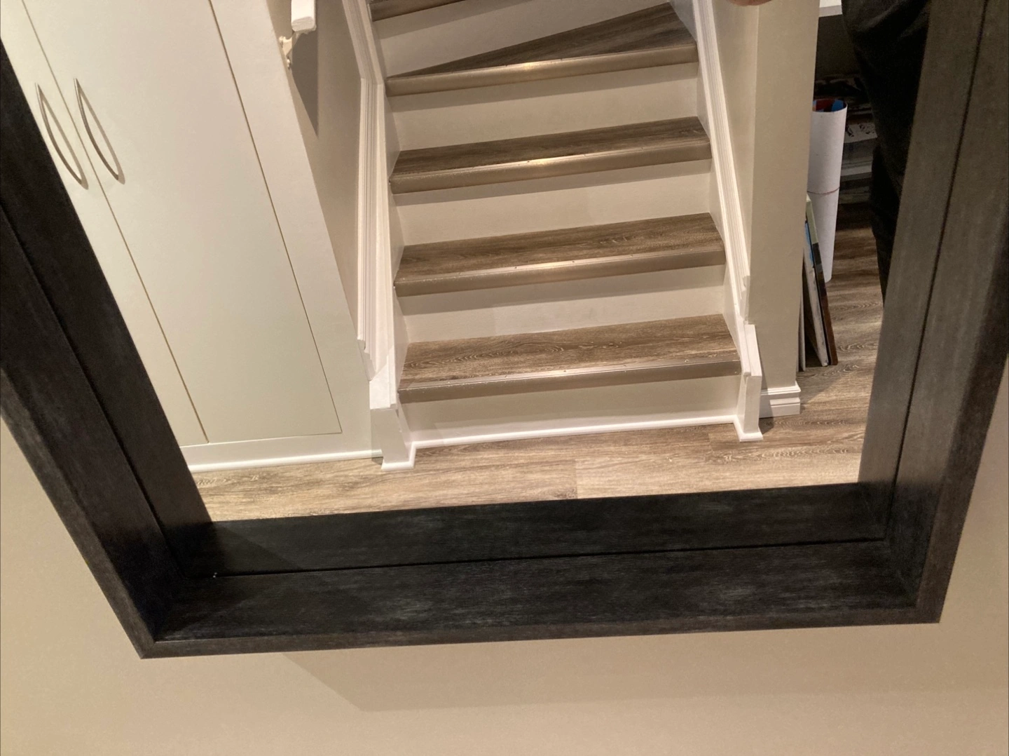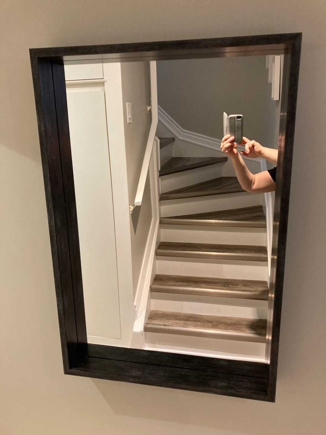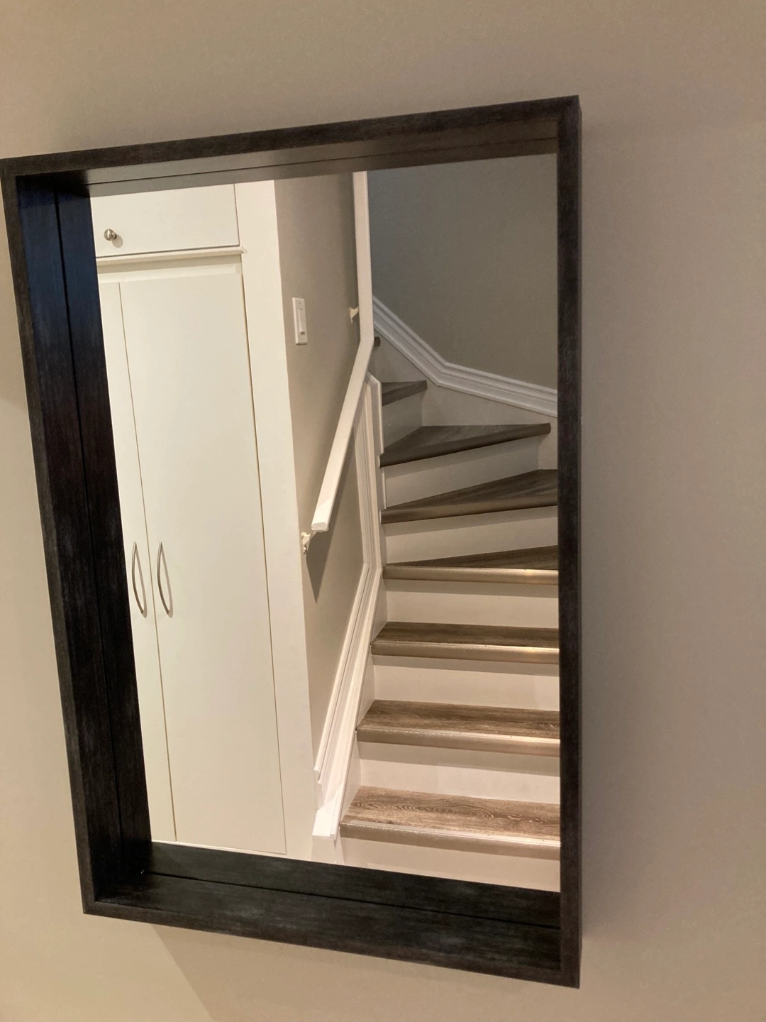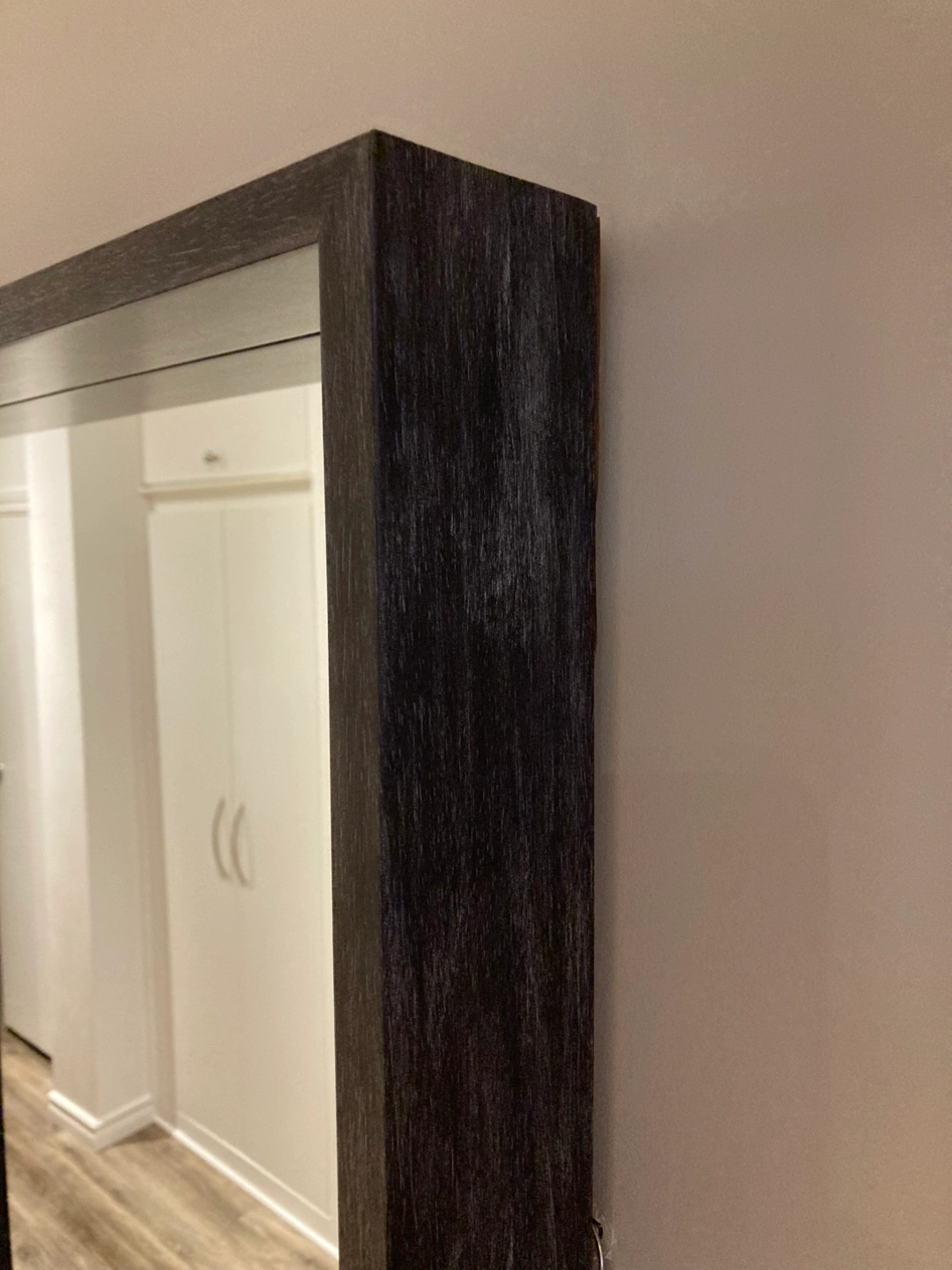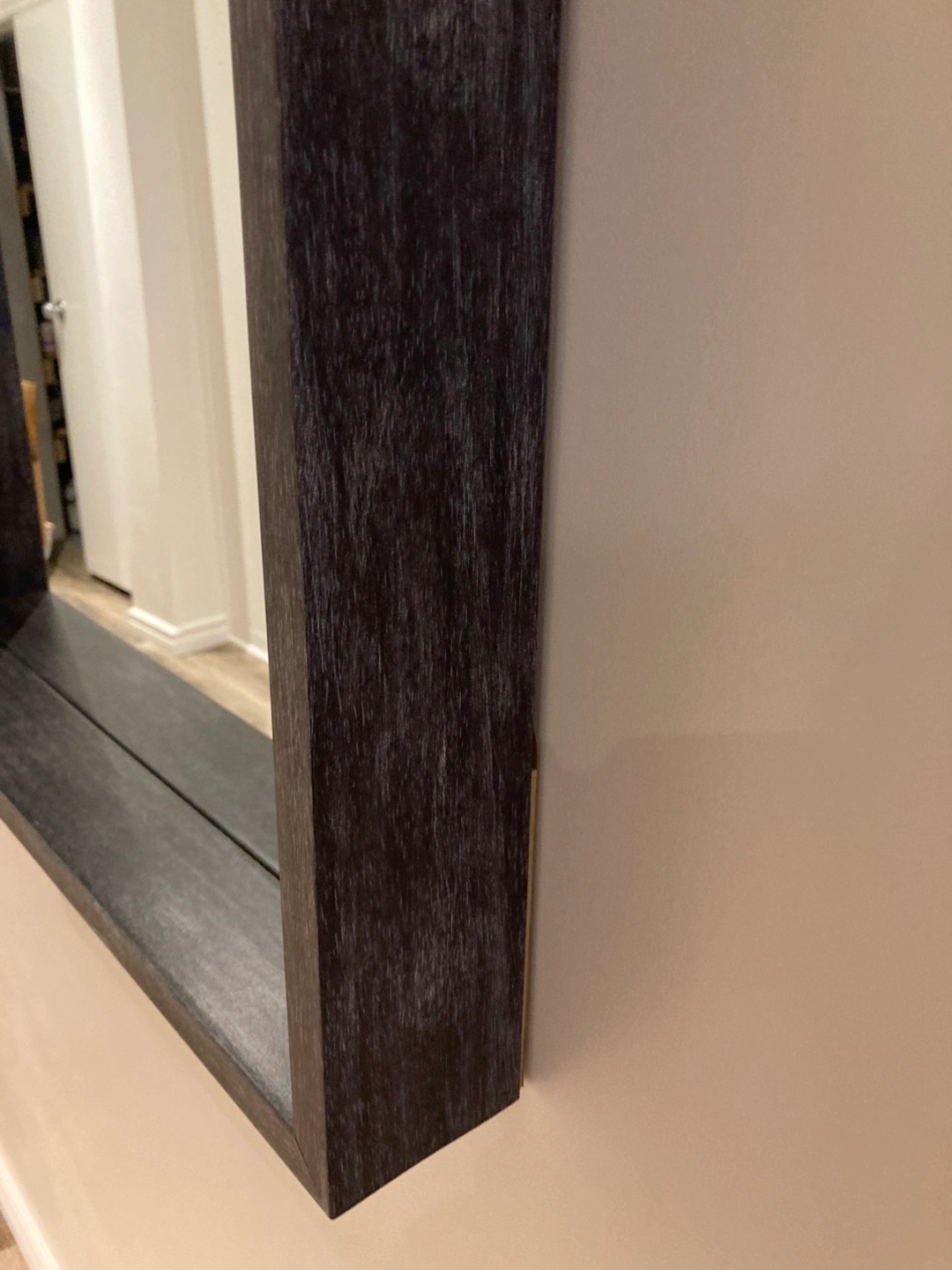 37” tall by 25” wide by 3” deep Wall mirror with ledge all the way around. Dark grey colour. New condition. Stouffville pickup