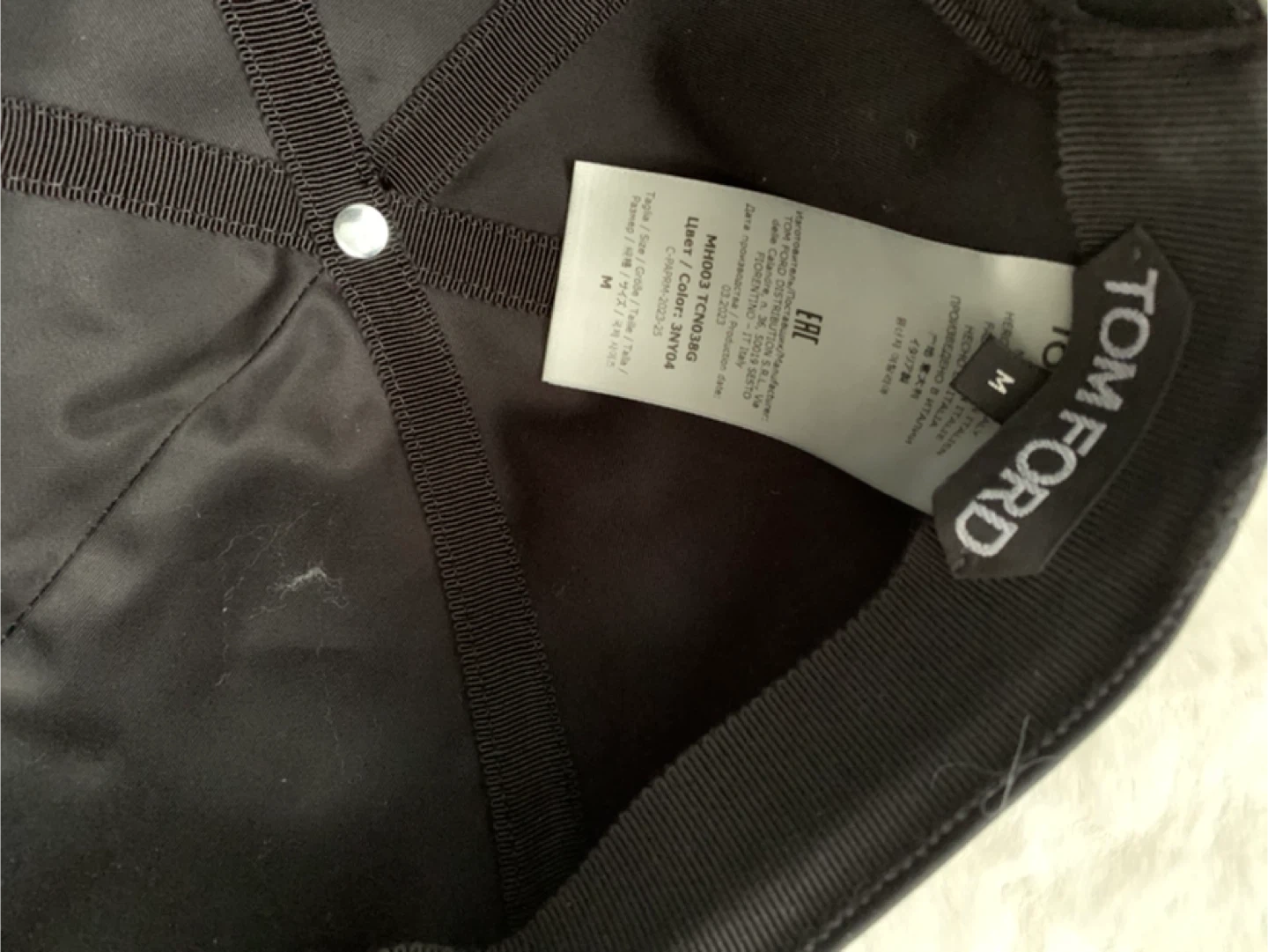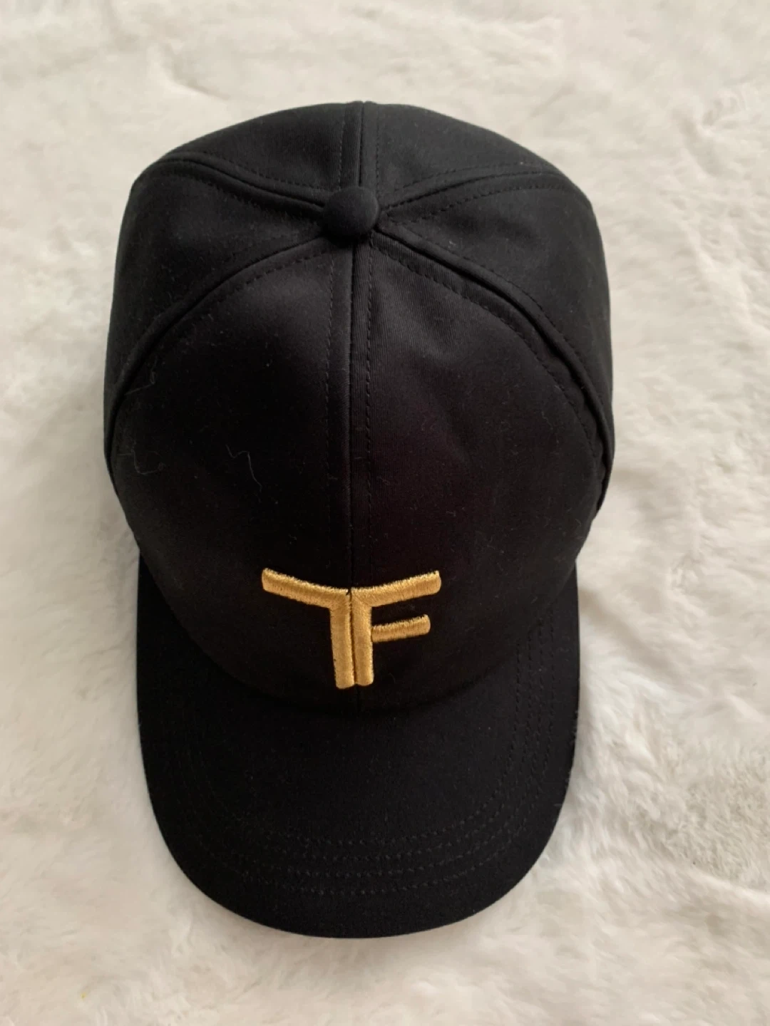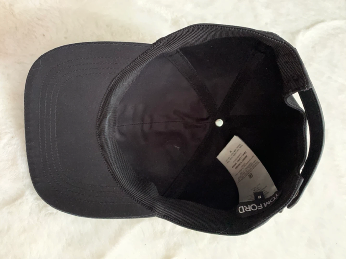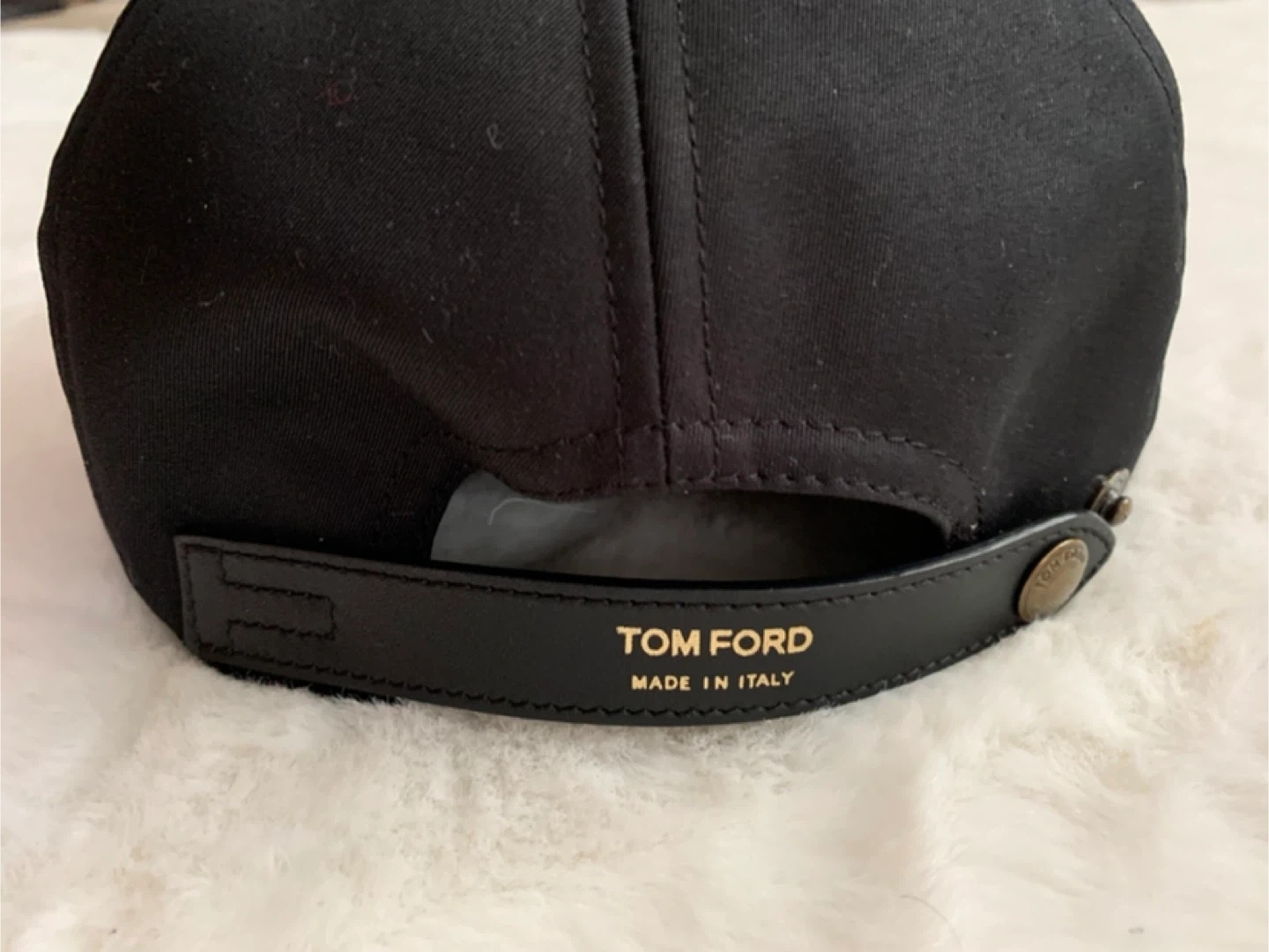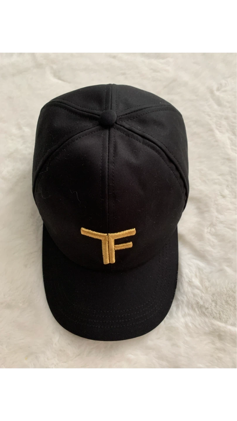 Selling a Tom Ford baseball cap in black. It's a size medium and features the TF logo (embroidered in gold color). The back has a leather strap with the Tom Ford name. It's in great condition! Comes as is.