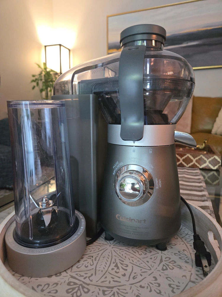Selling a Cuisinart juice extractor that's in great condition. It includes the juicer and a blending cup. Perfect for making fresh juices and smoothies at home!
