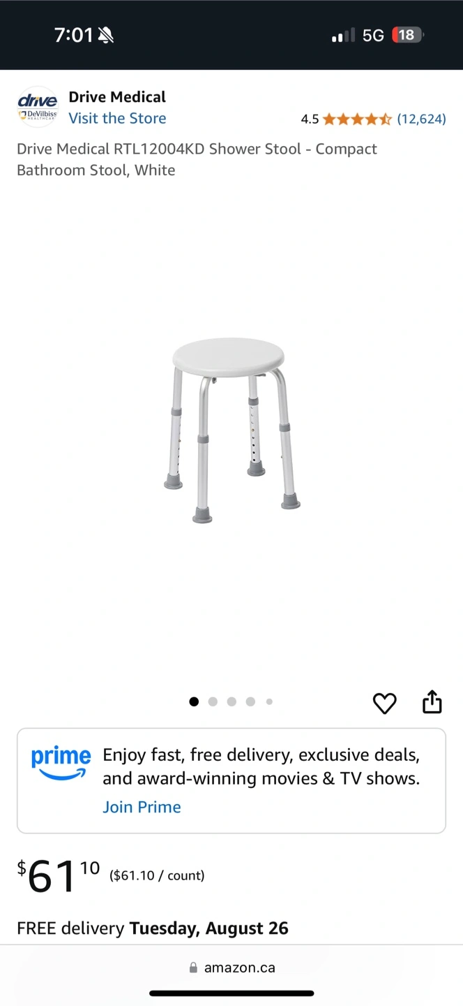 Selling a Drive Medical compact bathroom shower stool. It's white and made of aluminum.