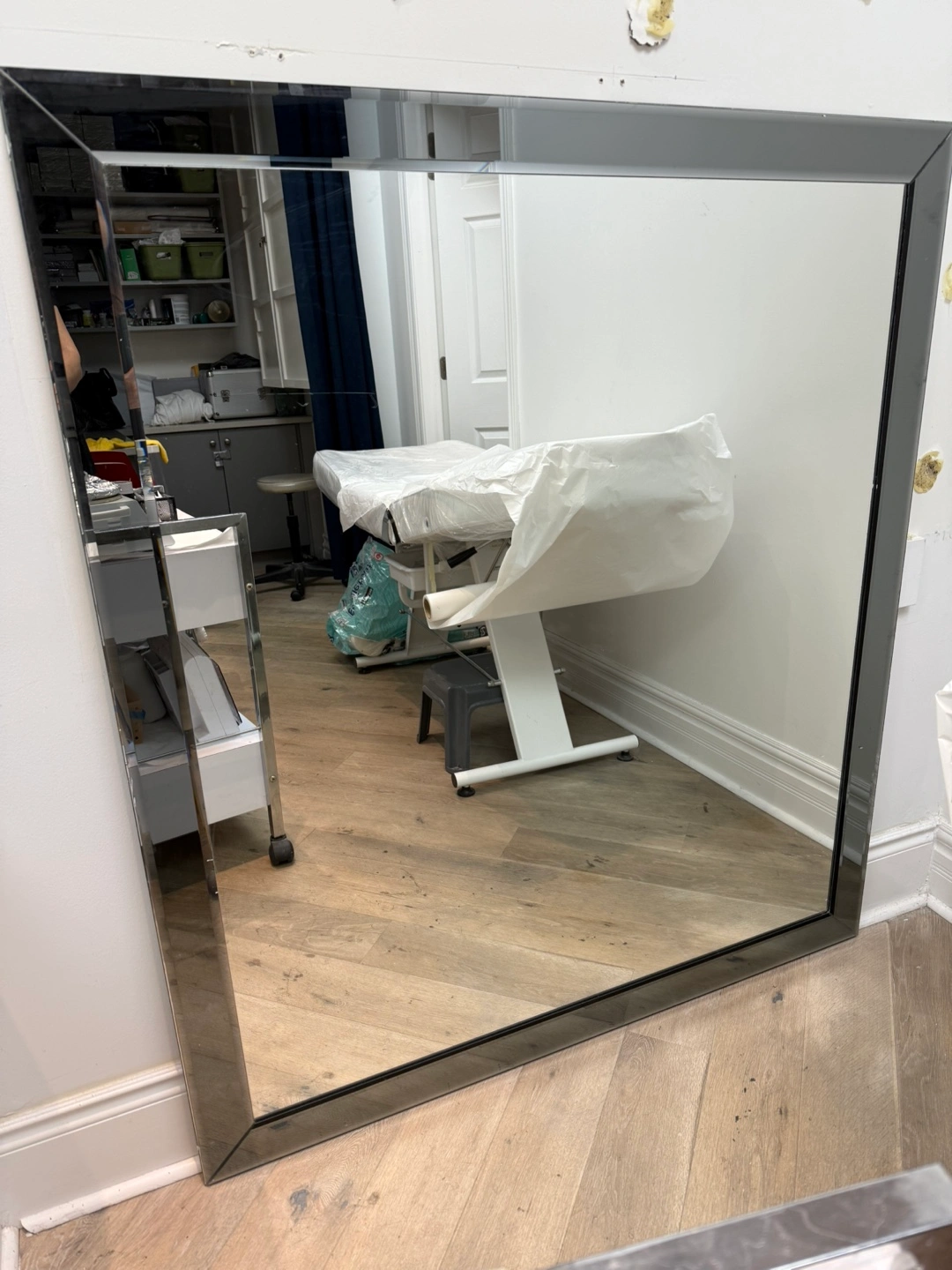 Selling a large wall mirror with frame. It's in good condition and ready to add some extra light and space to your home. It would look great in a hallway, bedroom, or living room , salon, spa
