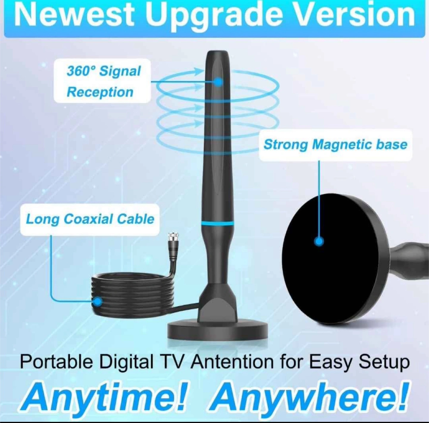 Selling a brand new Wave Digital HDTV indoor TV antenna, still in its original box! It's black and blue and supports 4K Ultra HD and 1080P Full HD. It features a strong magnetic base and long coaxial cable for easy setup anytime, anywhere. Get long-range reception and enjoy your favourite channels!