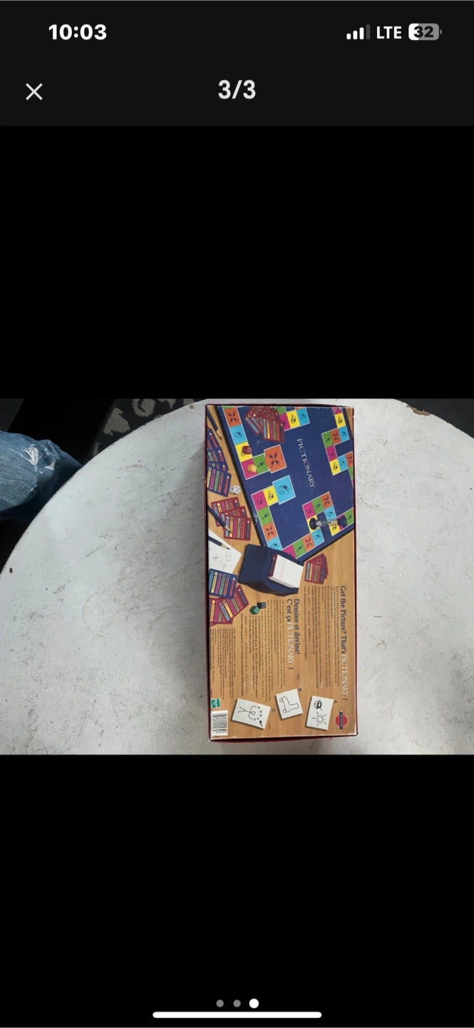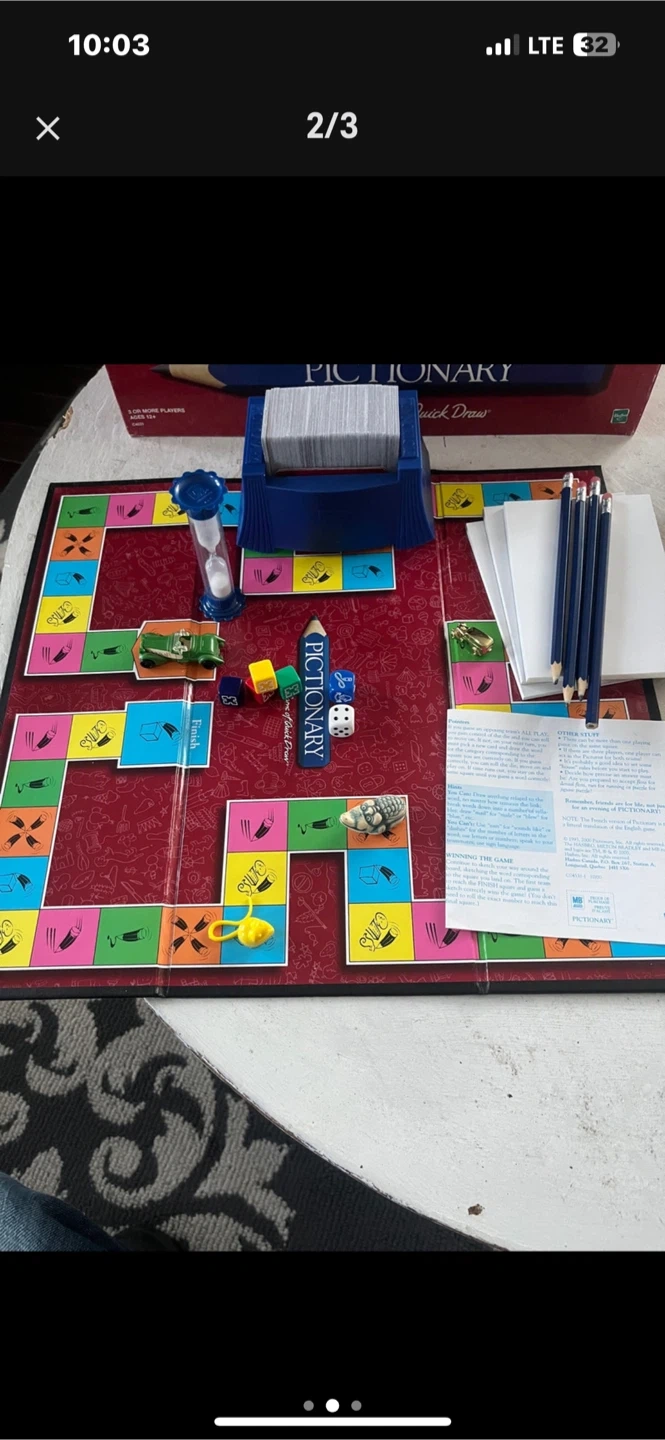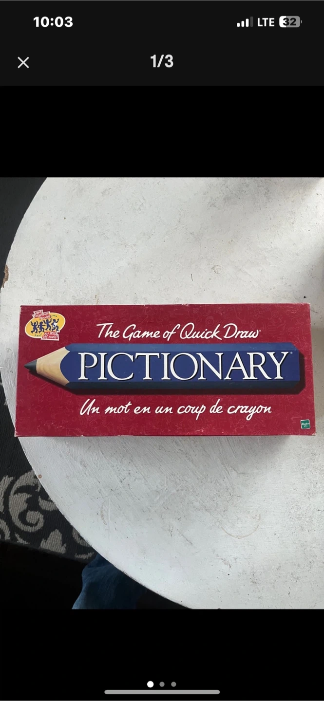 Selling a Pictionary game! It's the classic game of quick draw, perfect for family game night or a fun get-together with friends. The box includes all the components to play!
