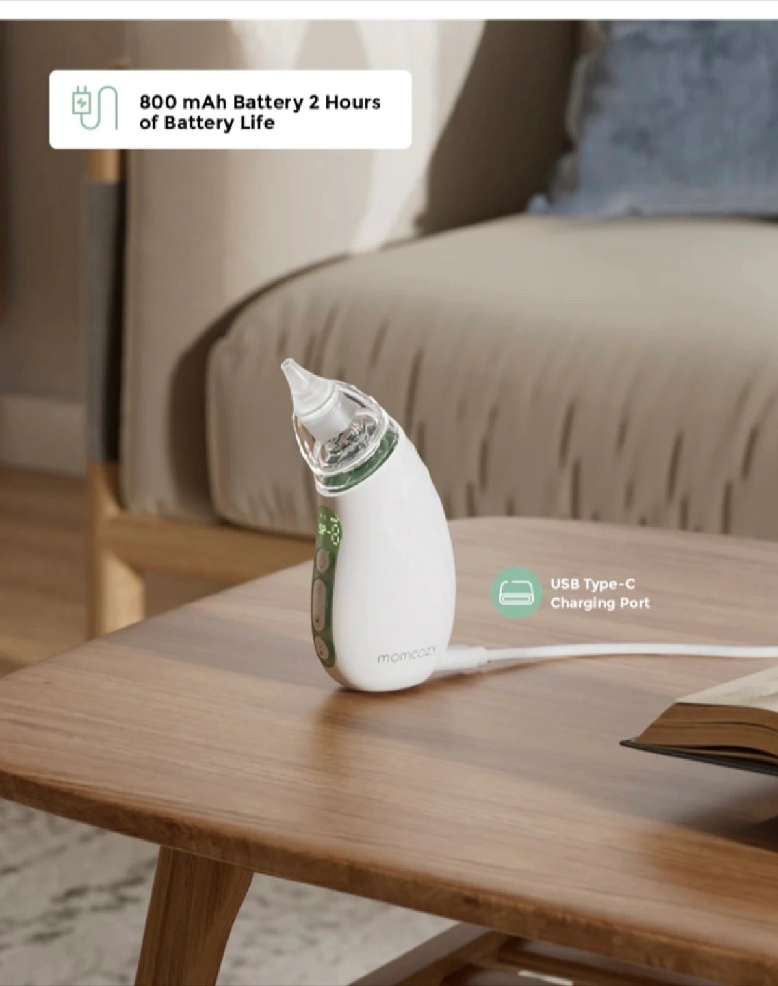 20I'm selling a brand new Momcozy Baby Nasal Aspirator, model BN02! It comes with the box and all included components. It features a USB Type-C charging port and has a battery life of 2 hours with its 800 mAh battery. Perfect for clearing your little one's nasal passages with ease!