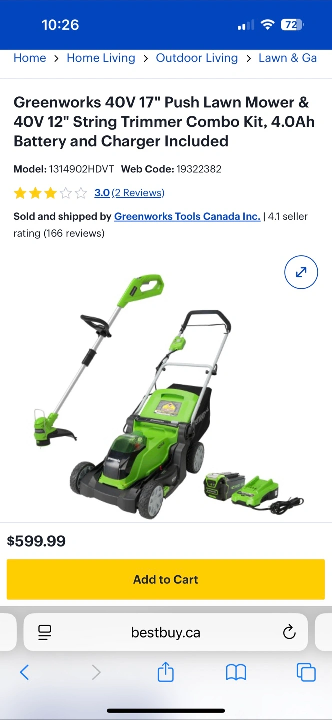Selling a Greenworks Pro 40V 17" Push Lawn Mower and 40V 12" String Trimmer Combo Kit. It comes with a 4.0Ah Battery and Charger. Lawn mower used for 2 seasons and works well. String trimmer brand new and unused.