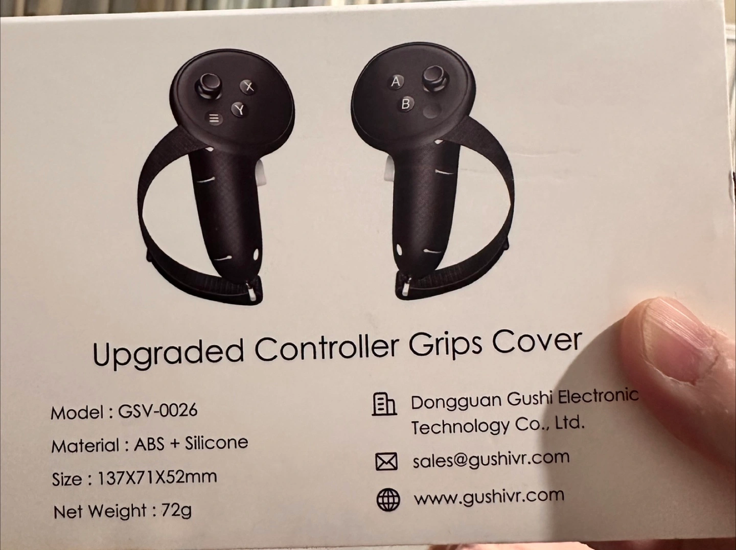 20Selling a brand new upgraded controller grips cover for Oculus Quest 3! The model number is GSV-0026. These grips are made of ABS + Silicone, and the size is 137x71x52mm. Lightweight at only 72g. Comes in the original box