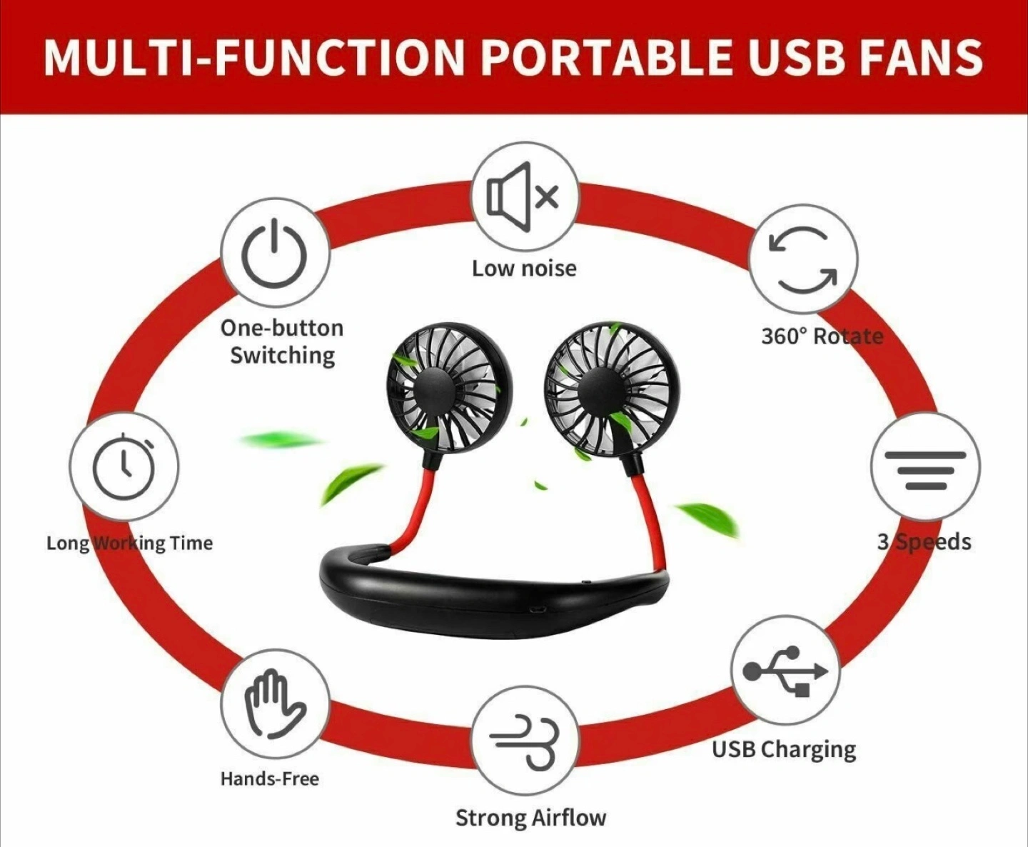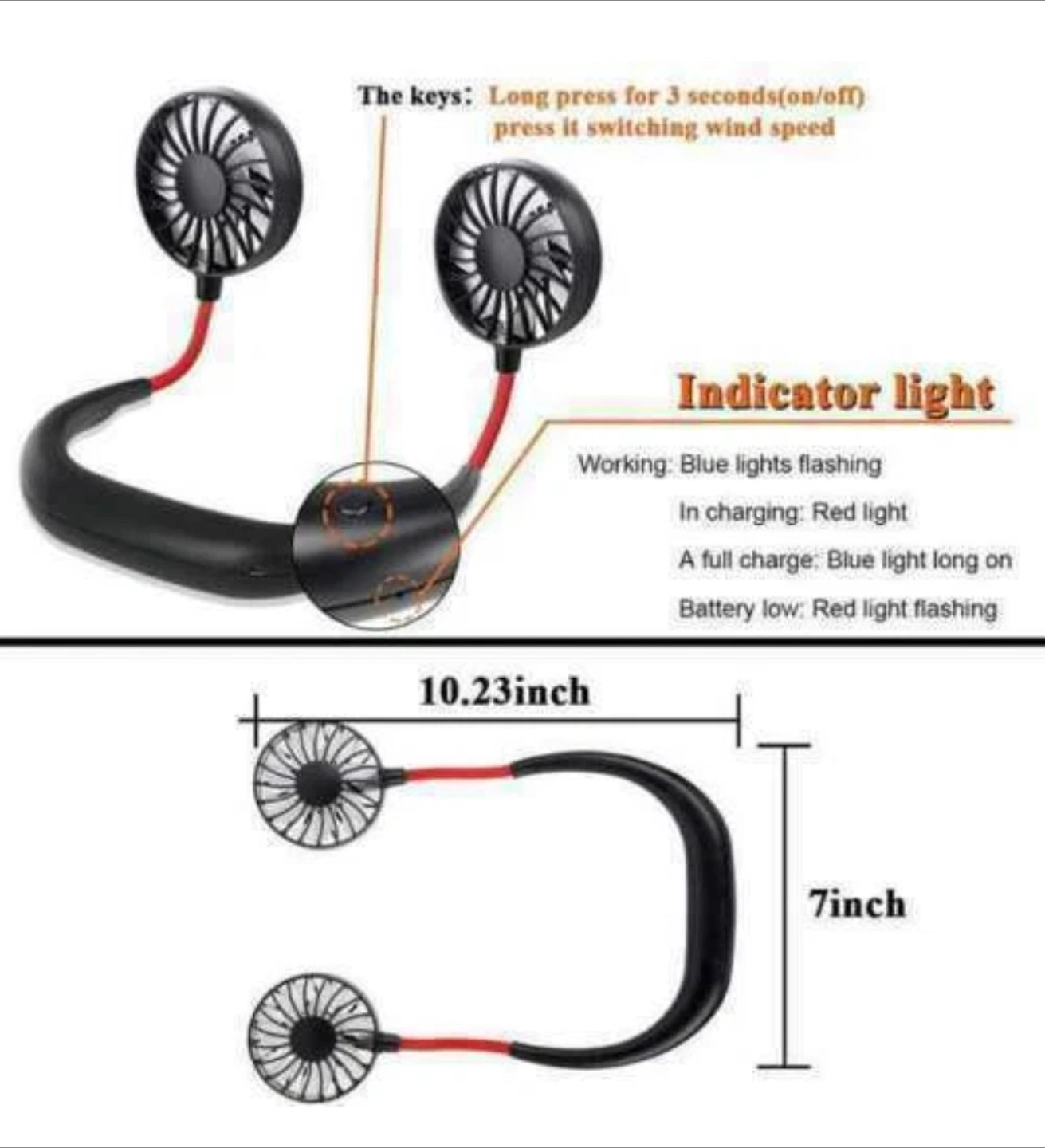 20Stay cool on the go with this portable neck fan! It's hands-free and USB rechargeable, making it perfect for outdoor activities or just lounging around the house. Enjoy a strong airflow and adjustable speeds. It's lightweight and easy to carry around too!