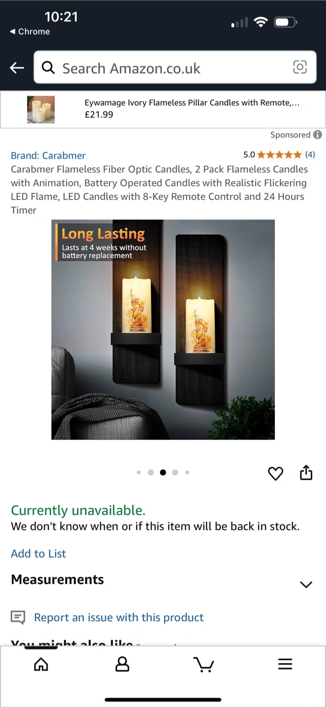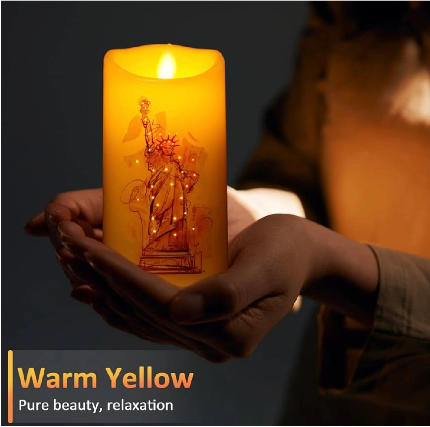 20Check out these flameless fiber optic candles by Carabmer! These candles feature a remote control to turn them on/off and control the brightness. You can also set timers for 4 or 8 hours. They create a warm yellow light for pure beauty and relaxation