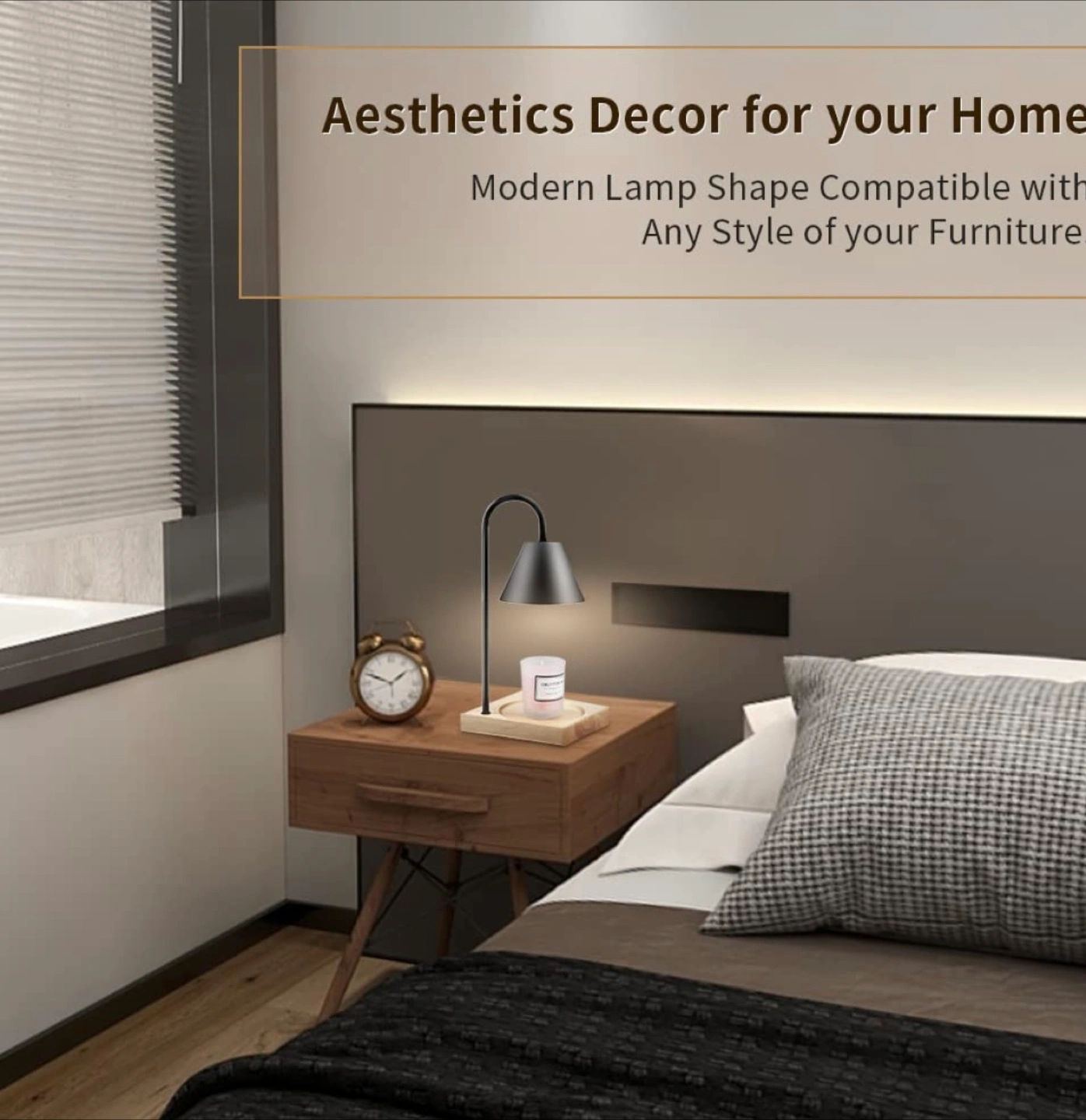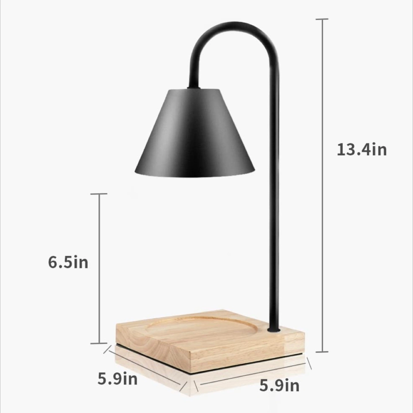 20Add a touch of modern aesthetics to your home with this sleek graphite black candle warmer lamp! It features a premium metallic lamp head and a universal fit wood holding mount. The brightness is dimmable, and it includes a 50-watt light bulb. Dimensions are approximately 13.4 inches in height, with a base of 5.9 x 5.9 inches