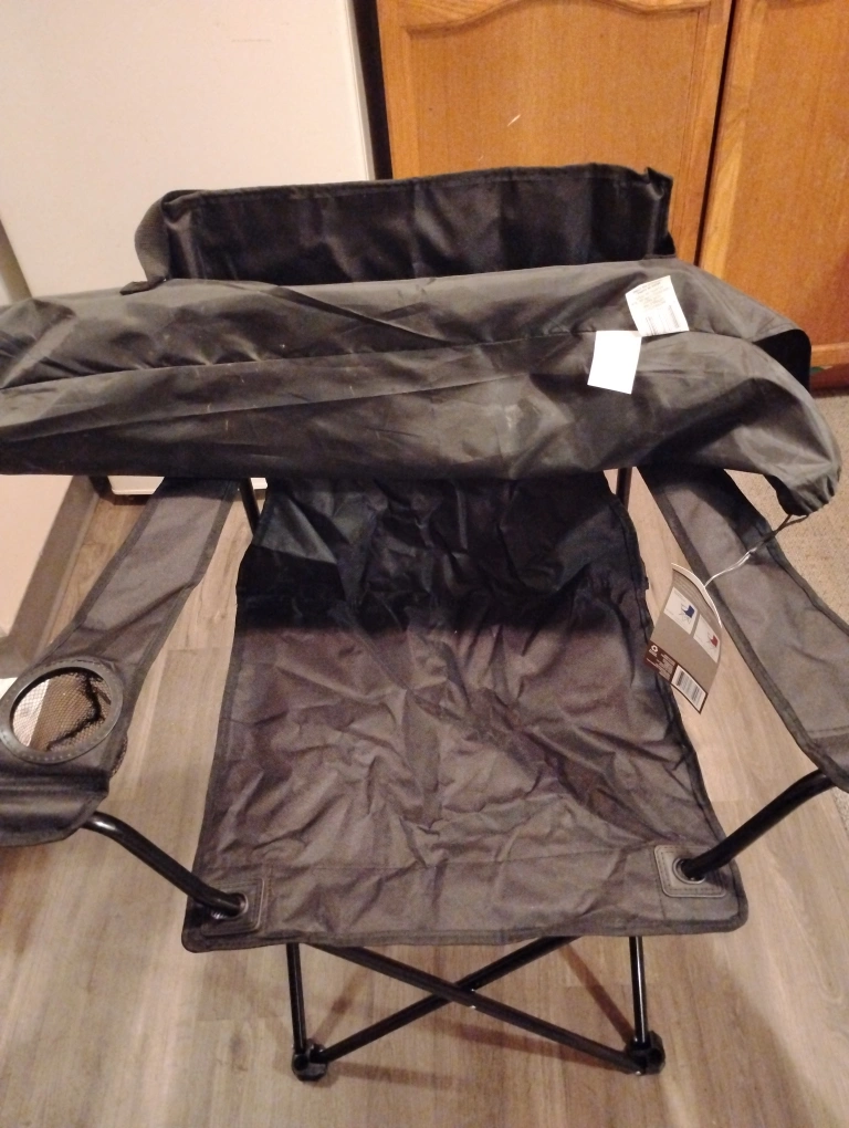 Here's a folding camping chair that's perfect for your next outdoor adventure! It's in great shape and comes with its own carry bag for easy transport and storage. Great for camping, picnics, or just relaxing in the backyard