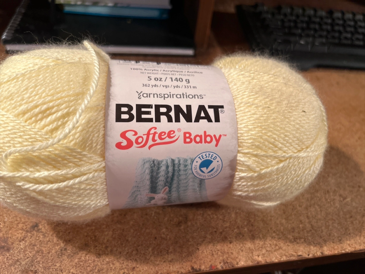 119Selling a skein of Bernat Softee Baby yarn! It's a lovely, soft yarn perfect for baby blankets, clothes, and other projects. - 100% Acrylic - Net weight: 5 oz / 140 g - 362 yds / 331 m It is for free Will do contactless pick up