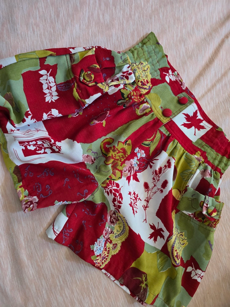1000+Cute floral print shorts in excellent condition! They feature a vibrant mix of red, green, and white colors. The shorts are size 8 and have a comfortable elastic waistband. #freecycle