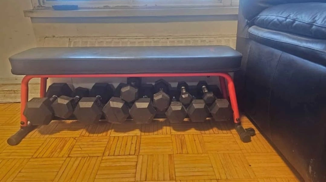Flat Bench & Hex Dumbbells Set 2.5, 7.5, 12.5, 17.5, 22.5 & 27.5 with High Weight Capacity movable Flat Bench with Dumbell Rack having Transportation Wheels for Sale. This Dumbbell Set with movable Flat Bench and Dumbbell Rack is perfect for your Home Gym. Interested buyers can contact me at 6476911873. Includes: 2 x 2.5lbs 2 x 7.5lbs 2 x 12.5lbs 2 x 17.5lbs 2 x 22.5lbs 2 x 27.5lbs Flat Beach with Dumbbell Rack and Wheels