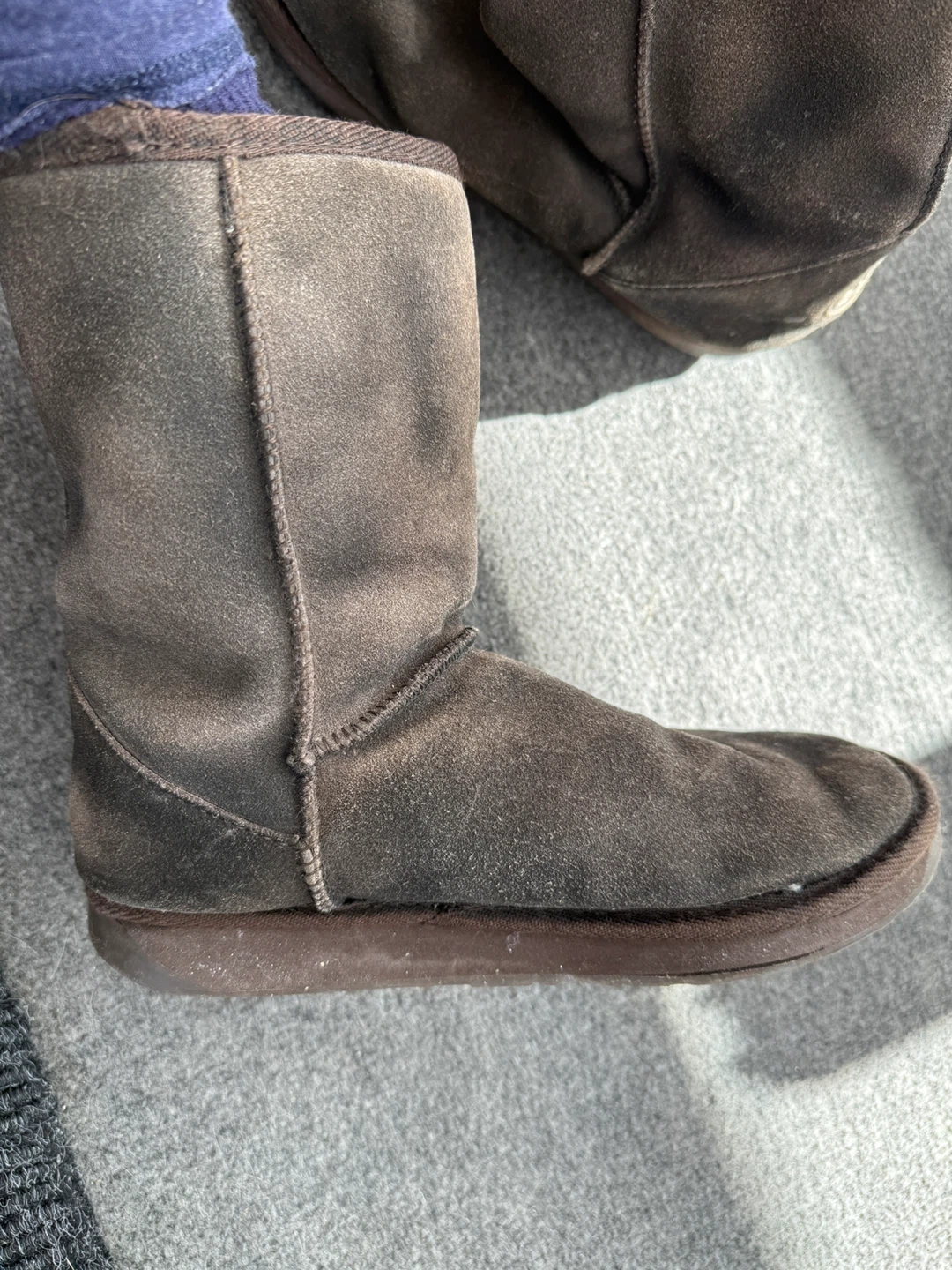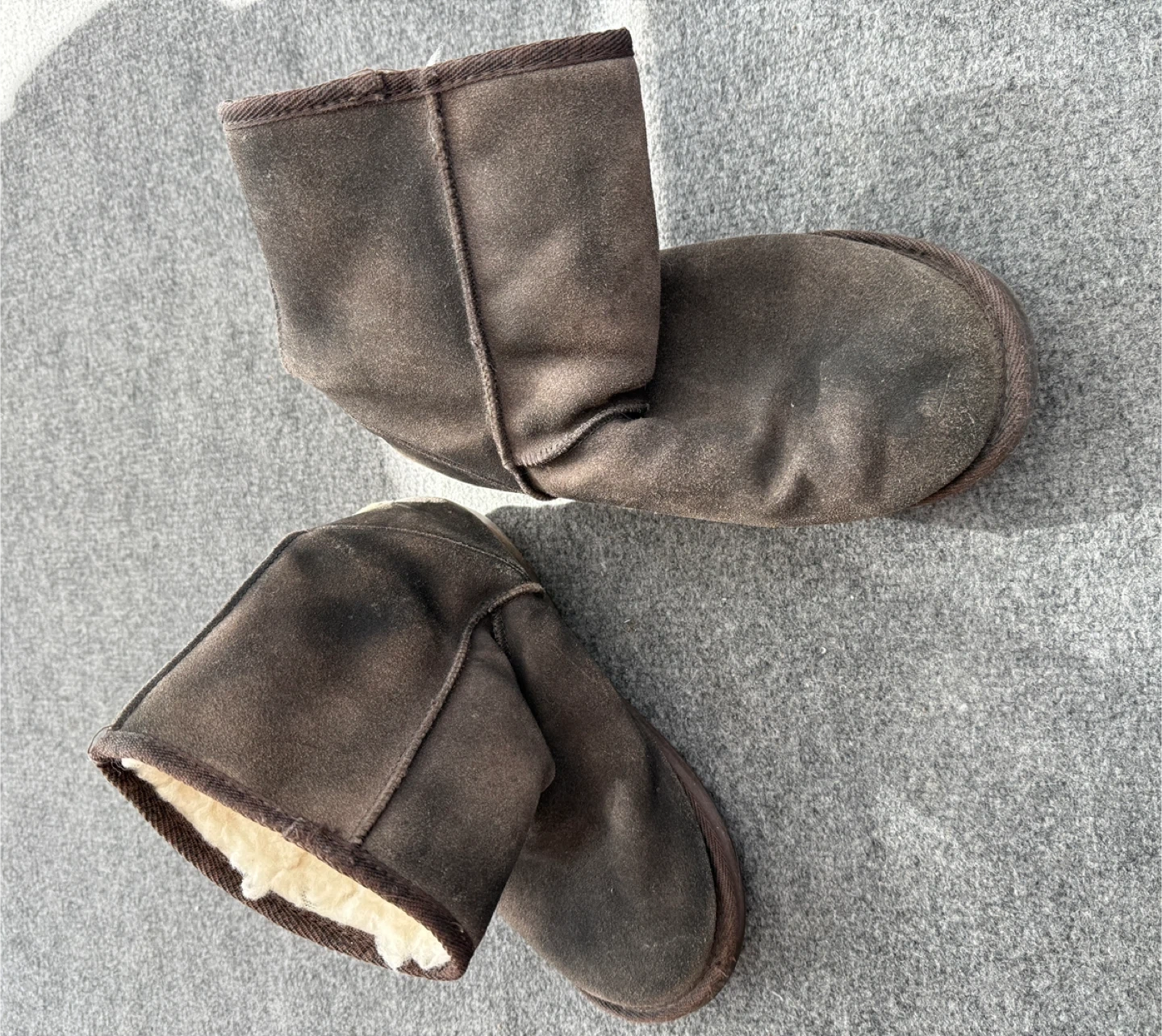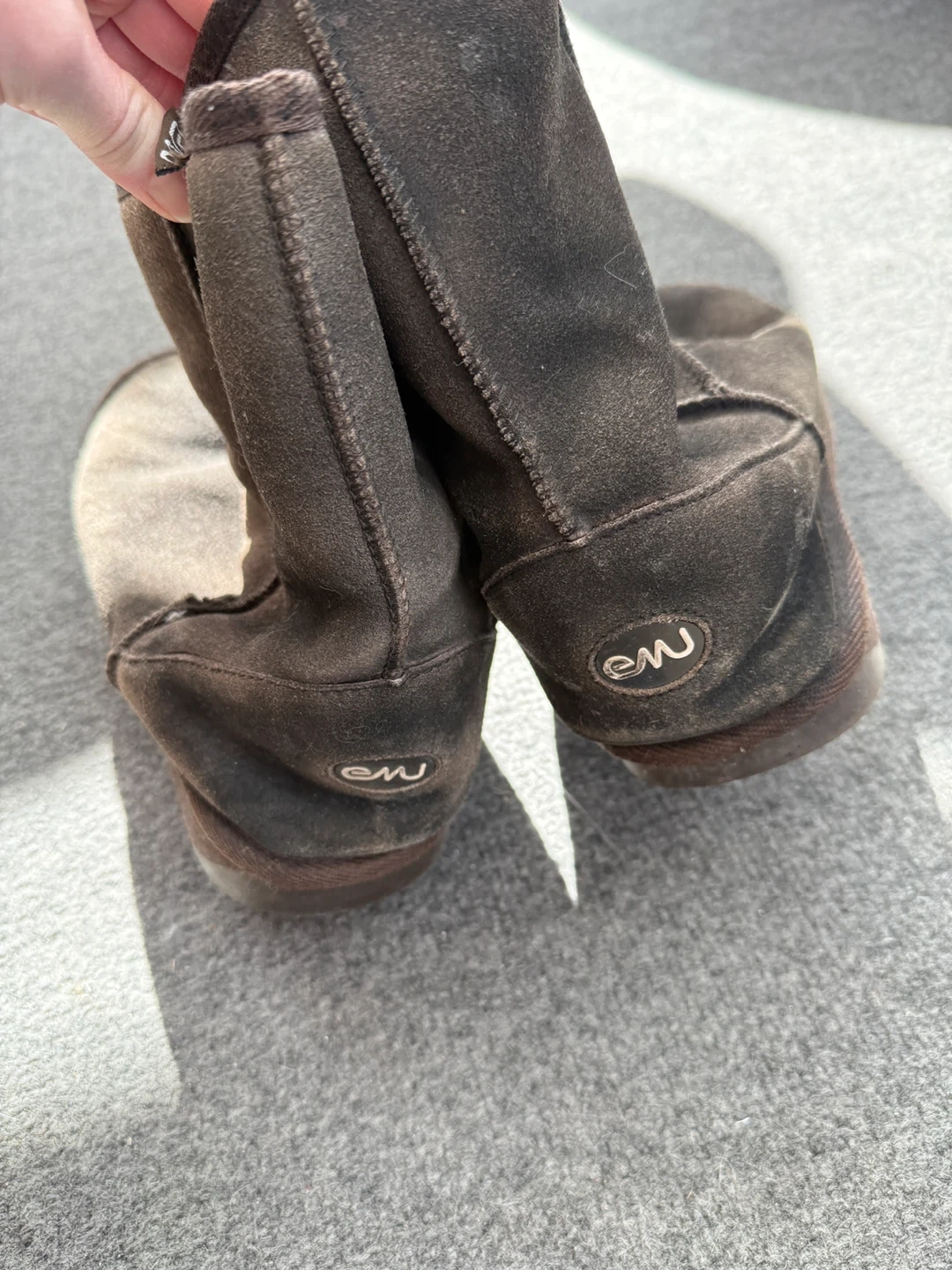 These Emu Australia boots feature a cozy wool lining and a suede upper. They're a womenβs size 8 and perfect for keeping feet warm. TPR sole.