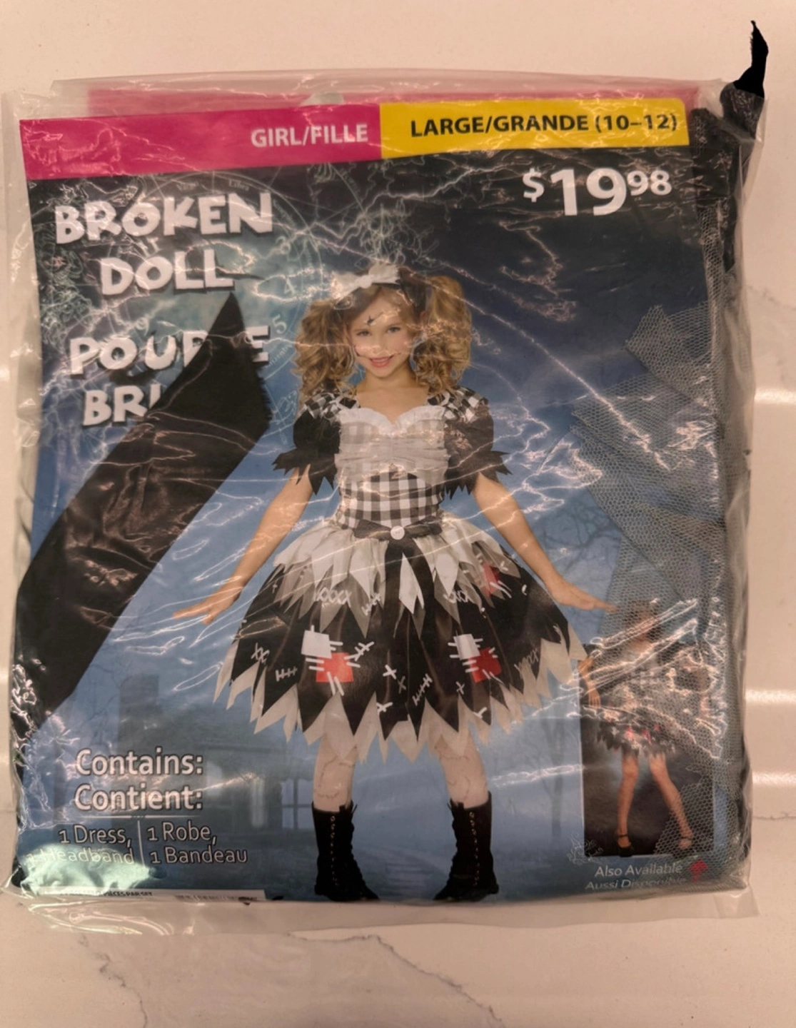 HALLOWEEN COSTUME- GIRLS BROKEN DOLL- SIZE LARGE (10-12)
