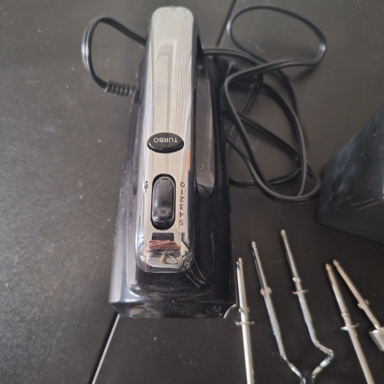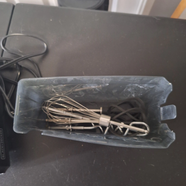 Selling a Black+Decker hand mixer. It comes with multiple attachments and a storage case to keep everything organized. Perfect for all your baking needs!