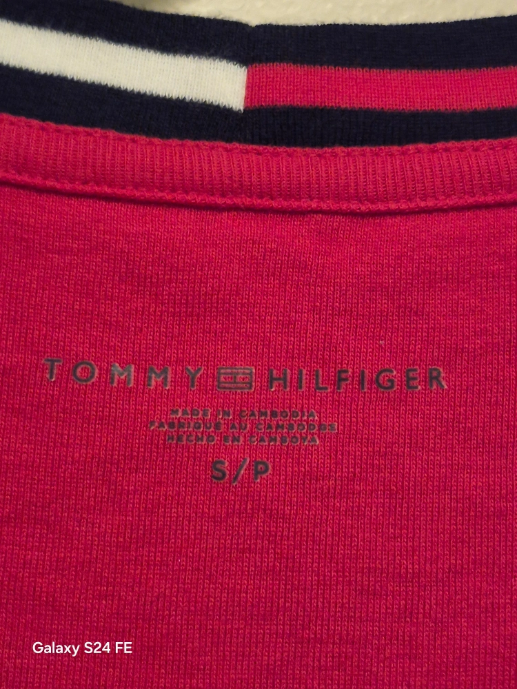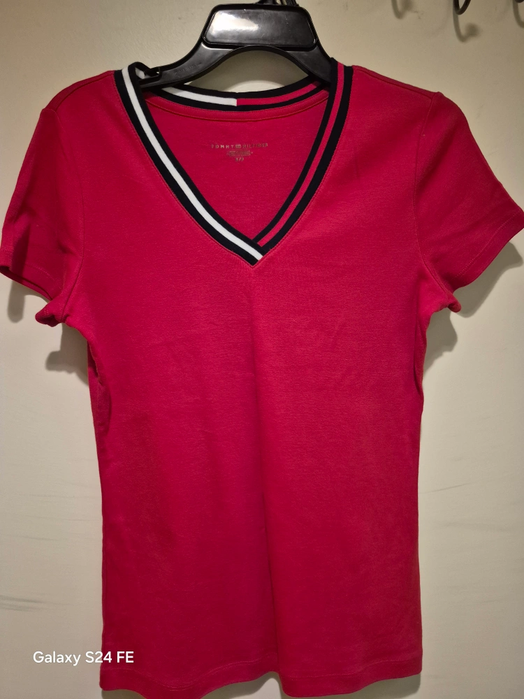 Selling a cute Tommy Hilfiger V-neck T-shirt in red. It's a size small and in great condition. Perfect for a casual day out!