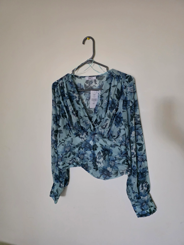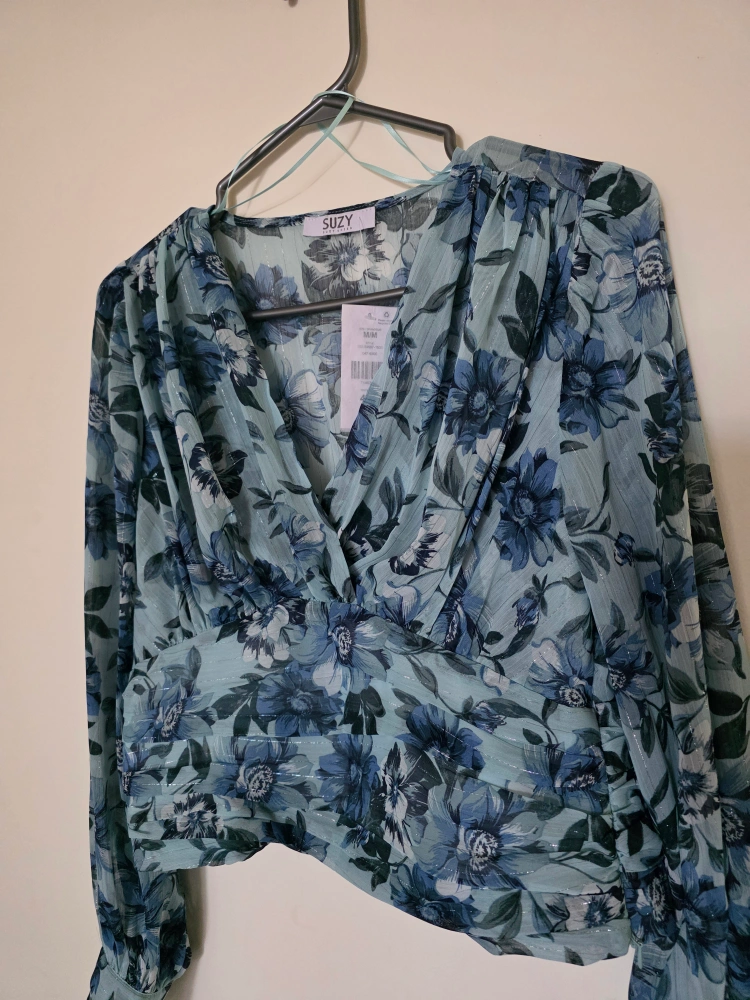 This pretty Suzy Shier blouse features a lovely floral pattern. It's a size M and would be a great addition to your wardrobe for work wear or casual outing.