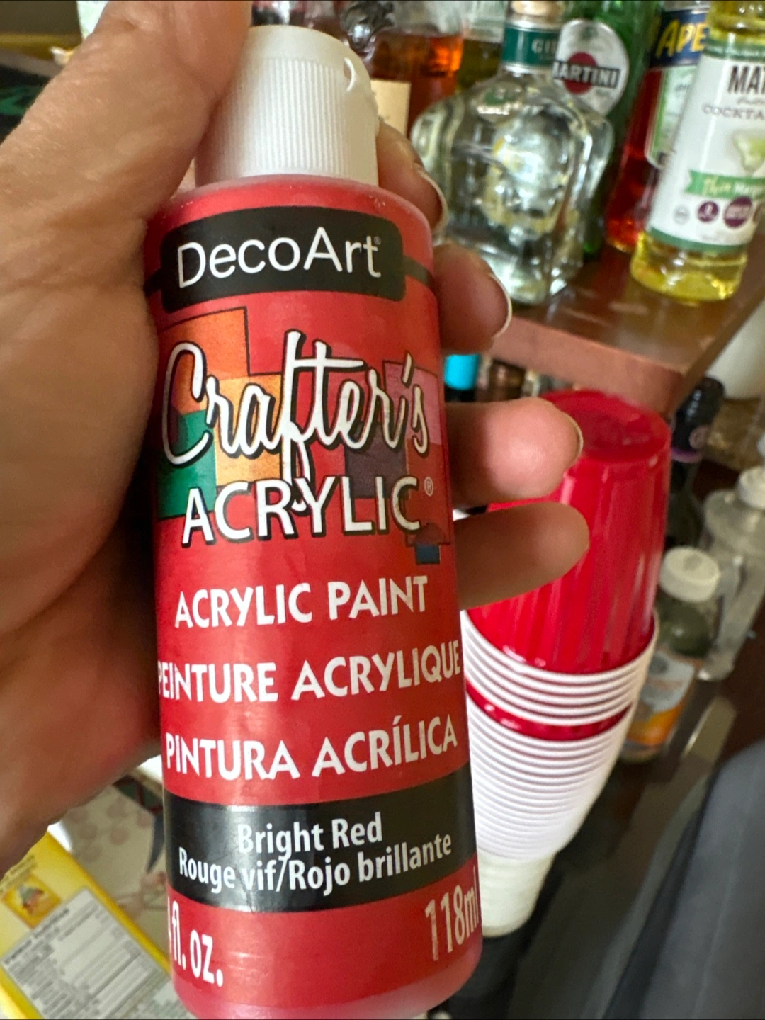 Selling a bottle of DecoArt Crafter's Acrylic Paint in Bright Red! The bottle contains 118ml (1 fl oz) of paint. Perfect for your crafting needs