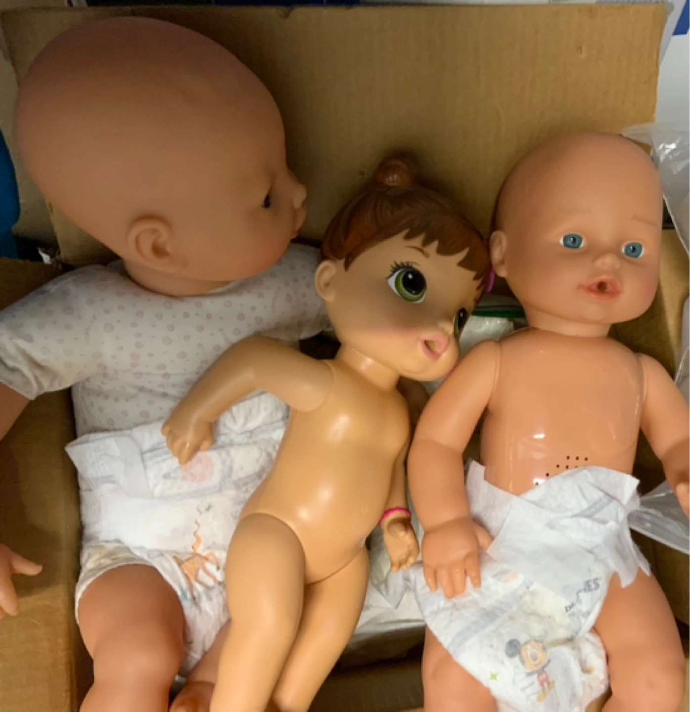 Giving away three dolls. They were used for a ‘change the diaper’ baby shower game.