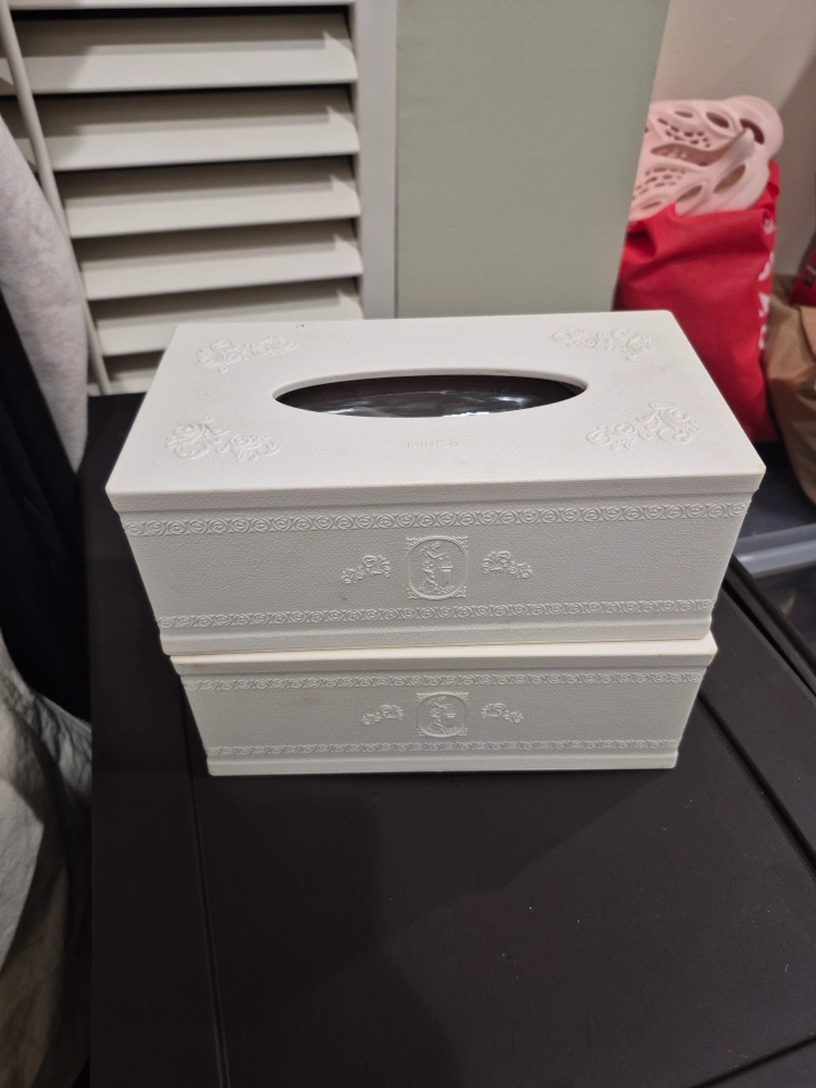 two white tissue box cover.