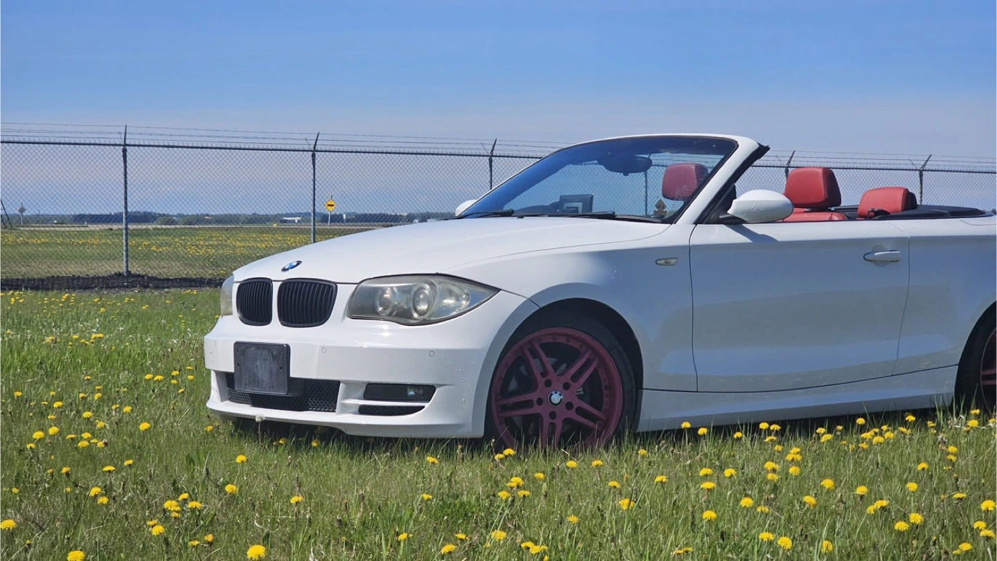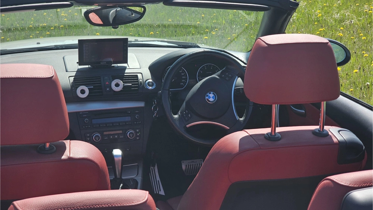 Selling a BMW 1 Series Convertible in white with red interior. It's in good condition with very low kms only 70,000 and ready for drive.