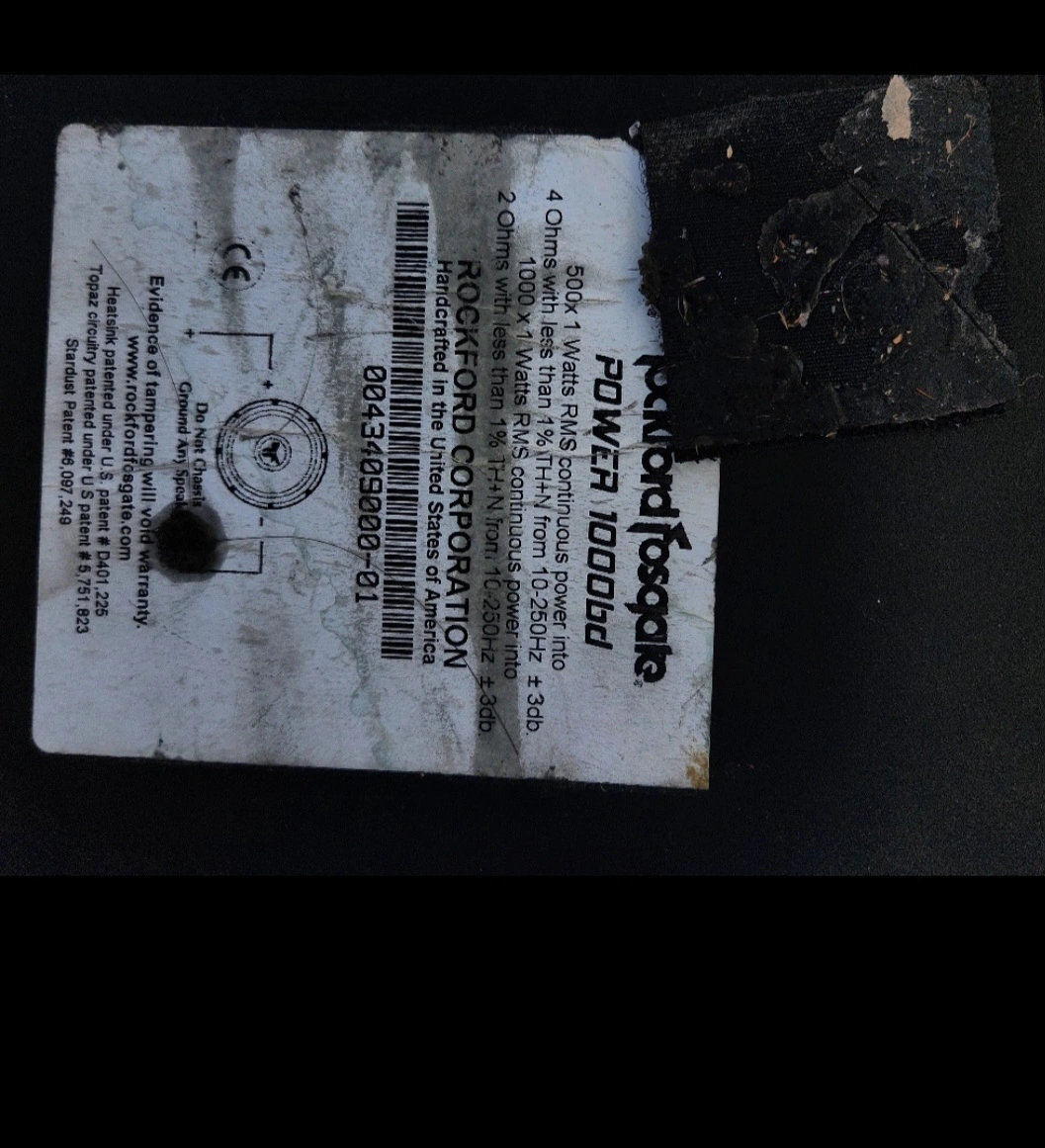 Rockford Fosgate Power 1000bd amplifier and an Alpine SWL-3048D Subwoofer.