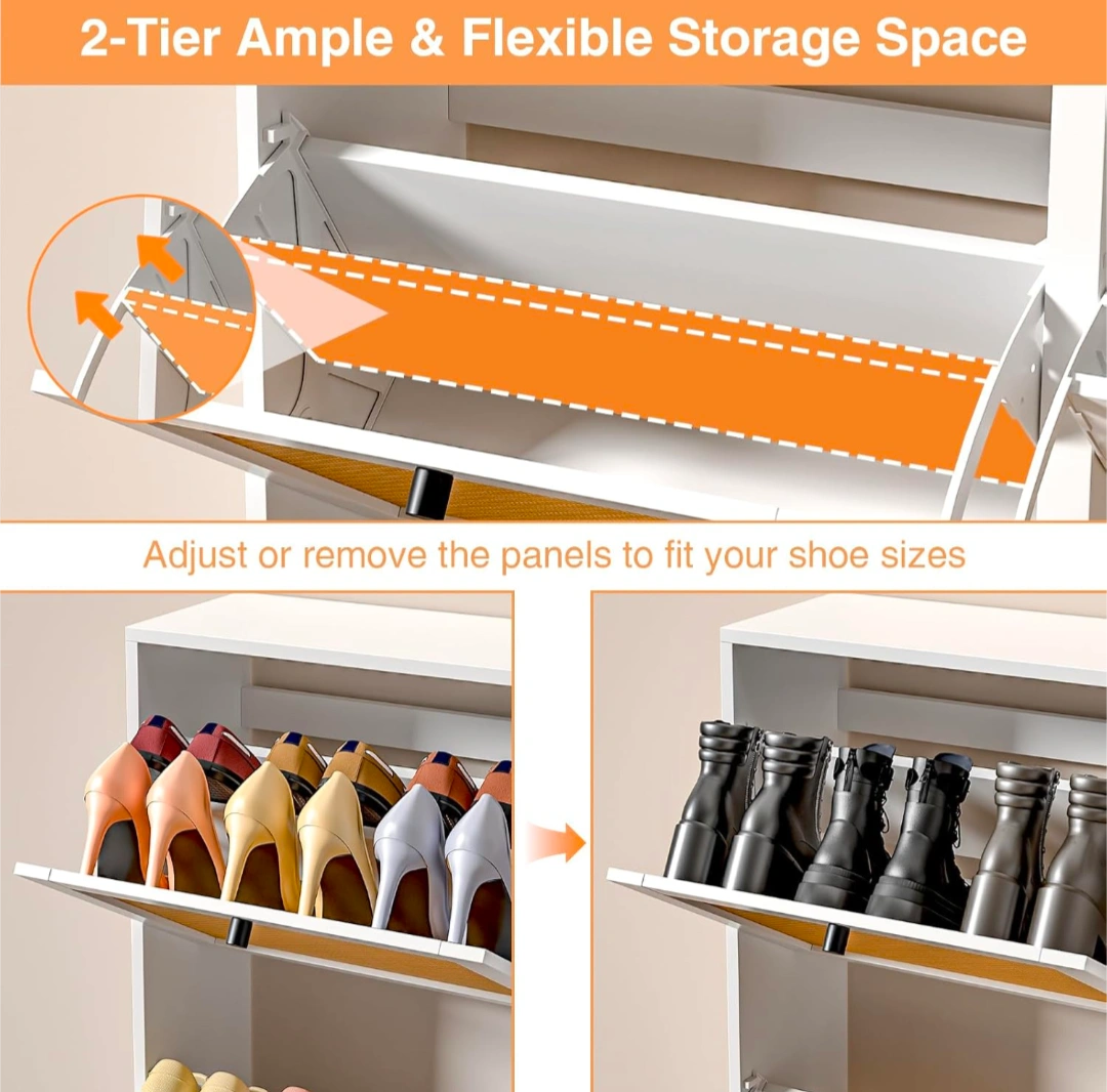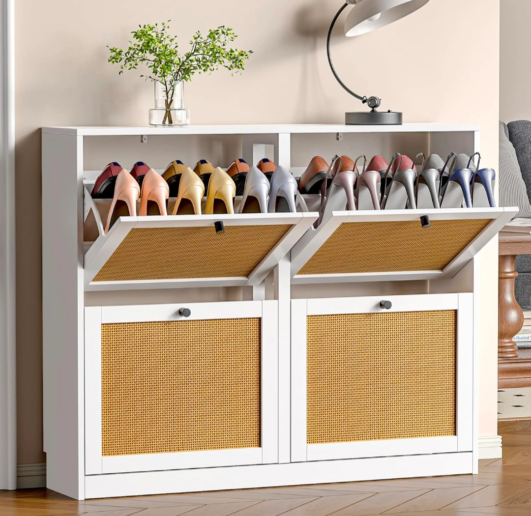 Looking to declutter your entryway? This shoe storage cabinet is perfect for keeping your shoes organized and out of sight!