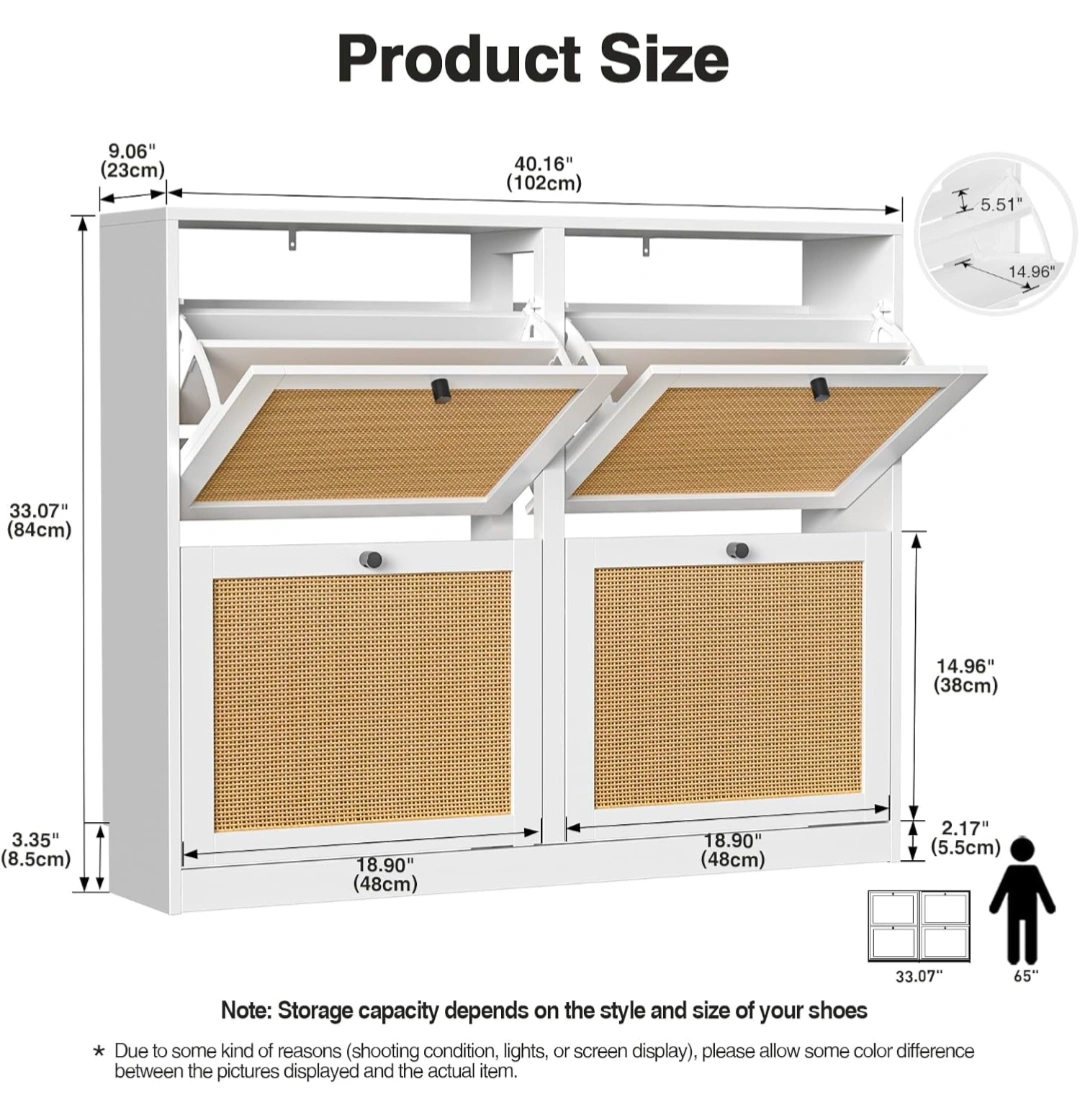 White Shoe Storage Cabinet with Rattan Doors