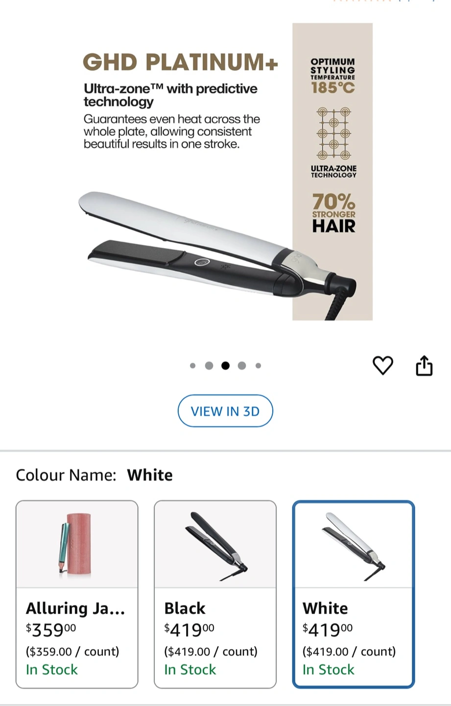 73Selling a GHD Platinum+ professional performance styler in white. It's designed to deliver ultimate results and stronger hair. The styler guarantees even heat across the whole plate, allowing consistent beautiful results in one stroke. The original box is included!