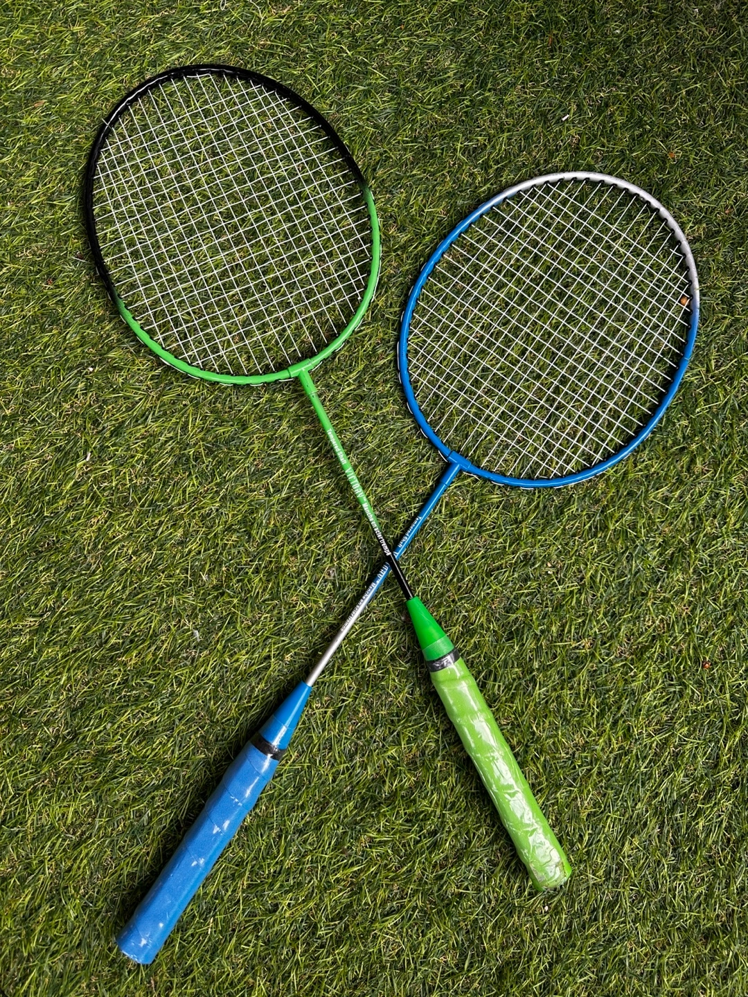 207Selling a set of two badminton rackets! One has a blue frame and handle, and the other has a green frame and handle. Perfect for some fun in the backyard or at the park! $2each