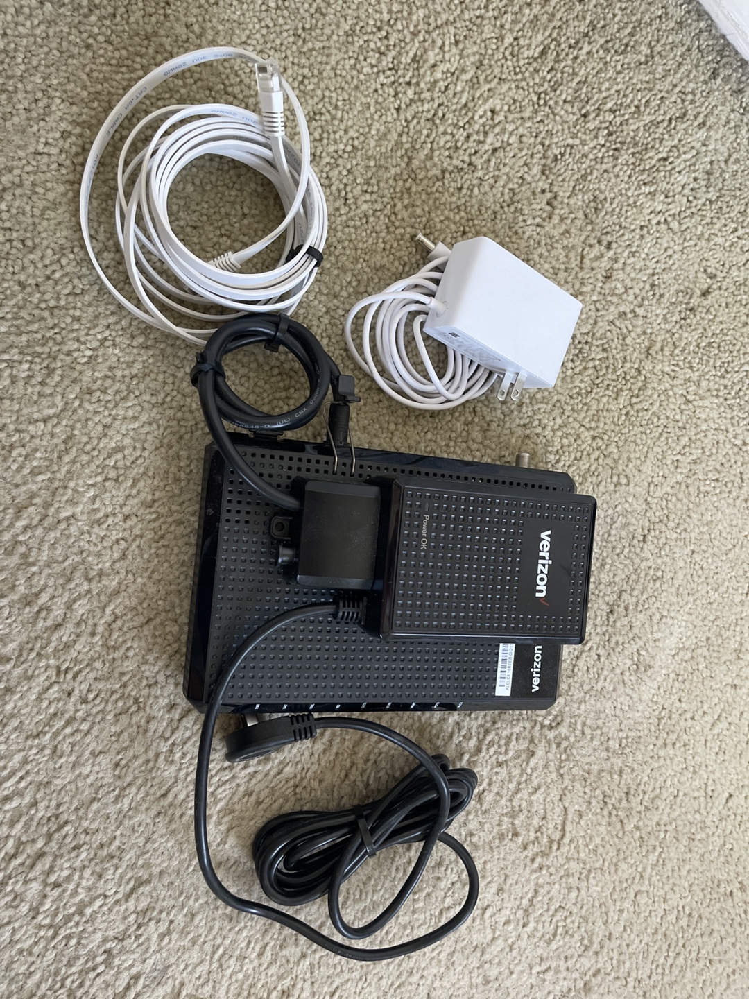 1 / 11 / 1Buy & SellVerizon Router equipmentVerizon Router equipment$29.85Verizon router equipment in new condition without box and tags. Includes: power adapter, and ethernet cables as pictured.ConditionLike newBrandVerizonWHERE TO MEETPapa Jon’s pizzaView MapSELLERverifiedChristianAstoria47432 reviews5 chats·0 favorites·59 viewsSEND CHAT TO SELLERHi Christian! I’m interested in your listing.Hi Christian! I’m interested in your listing.Get the Karrot app to chatSign In to chat