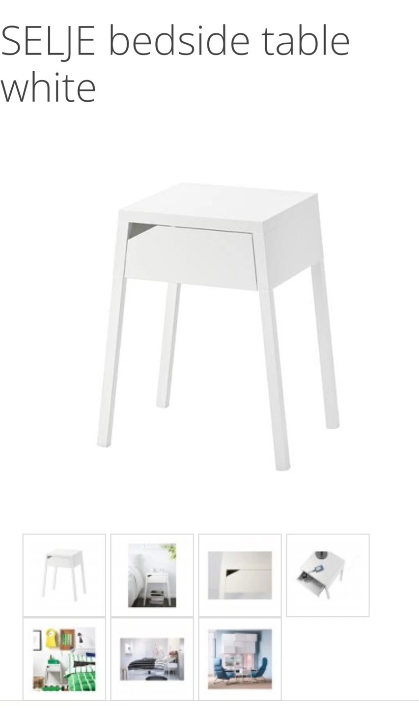 2 white IKEA SELJE bedside tables. It's in good condition.