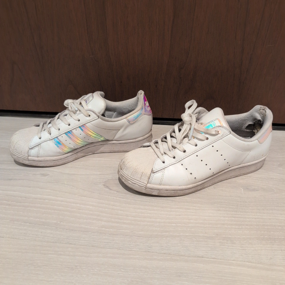 FREE pair of Adidas Superstar shoes in white! They're in good condition and have the classic Superstar style with the iconic three stripes. Perfect for everyday wear!