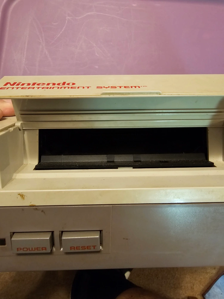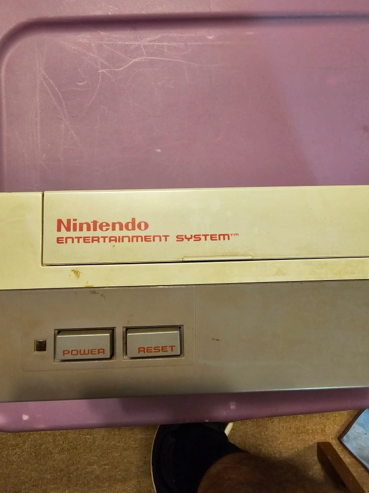 Selling a used Nintendo Entertainment System model # NES 001 (NES). It has some wear and tear, as you can see in the photos, but it's still functional. Perfect for retro gaming!