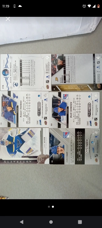 I'm selling a collection of hockey trading cards, featuring players from various teams. These cards are from Upper Deck Artifacts and other series. Great for any hockey fan or collector!