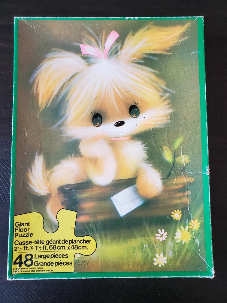 Original owner. Hard to find giant floor puzzle from the 70's. It's in great condition for its age and made in Canada! All the pieces are there as shown in last photo.