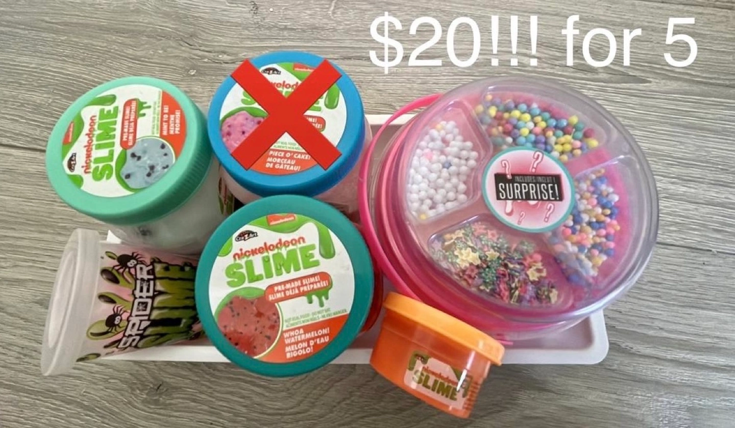 - Nickelodeon "Whoa Watermelon" slime, watermelon-scented (7.5 oz/212g), "water-slime-like". ($5 individually)