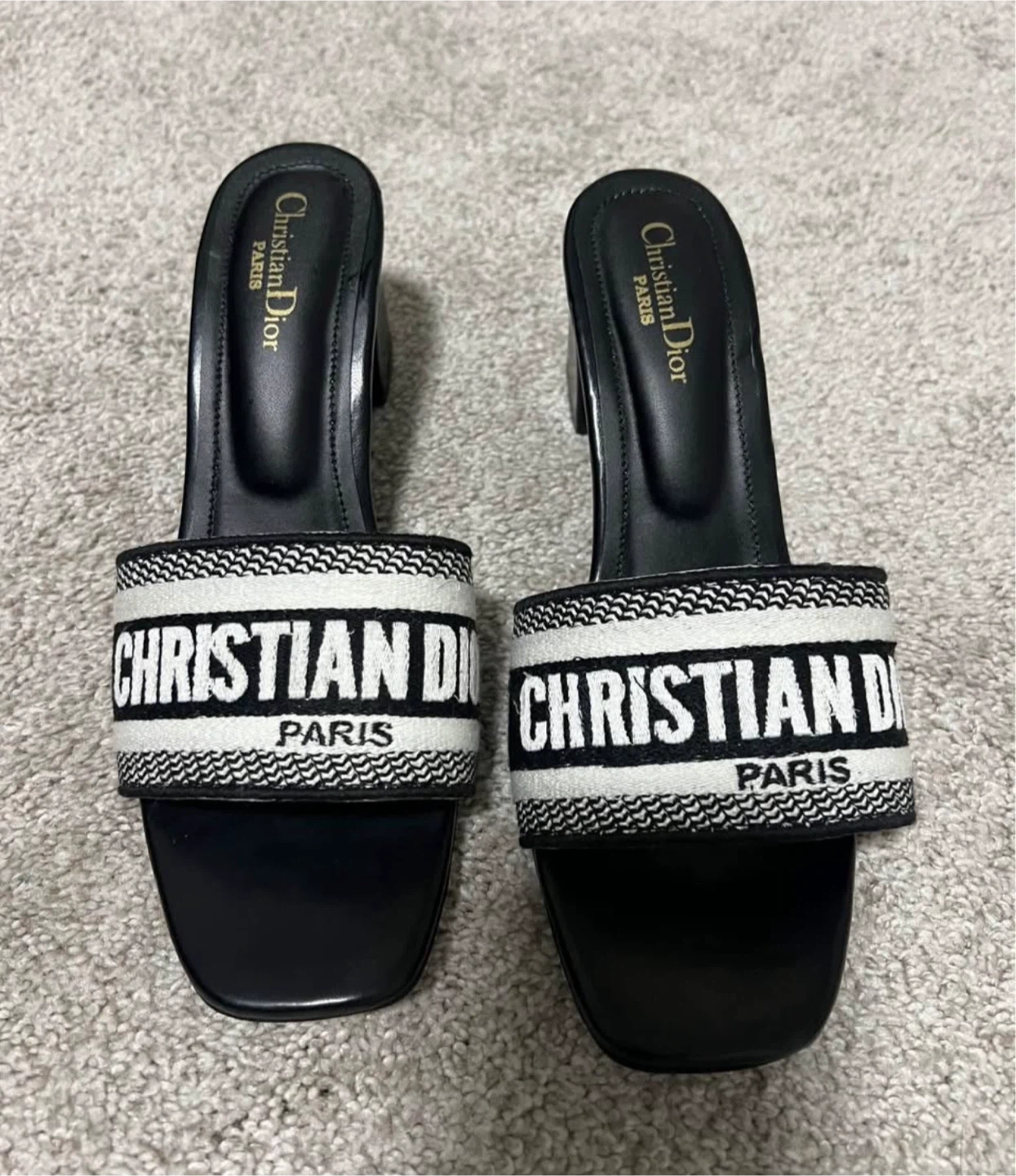 These Christian Dior sandals are in great condition! They feature the iconic Christian Dior logo in white on a black band. Perfect for adding a touch of luxury to your everyday style