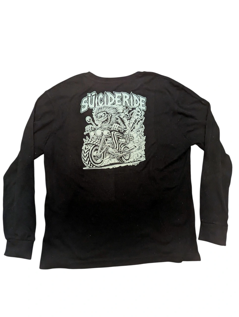NEW MENS LARGE Suicideride Psycho Biker long sleeve waffle Shirt