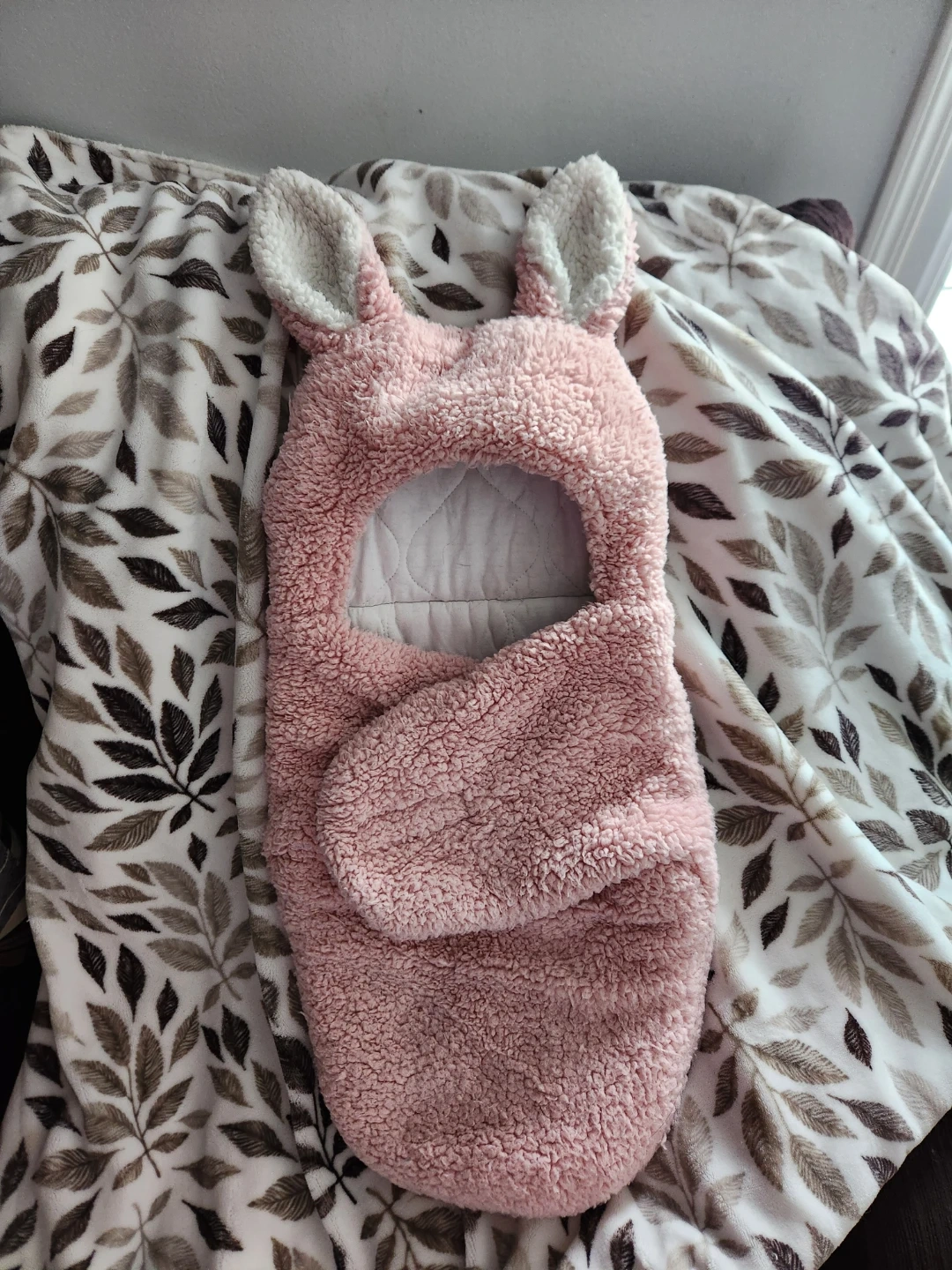 🧡 This is a size 3 month swaddle to keep a baby nice and warm.