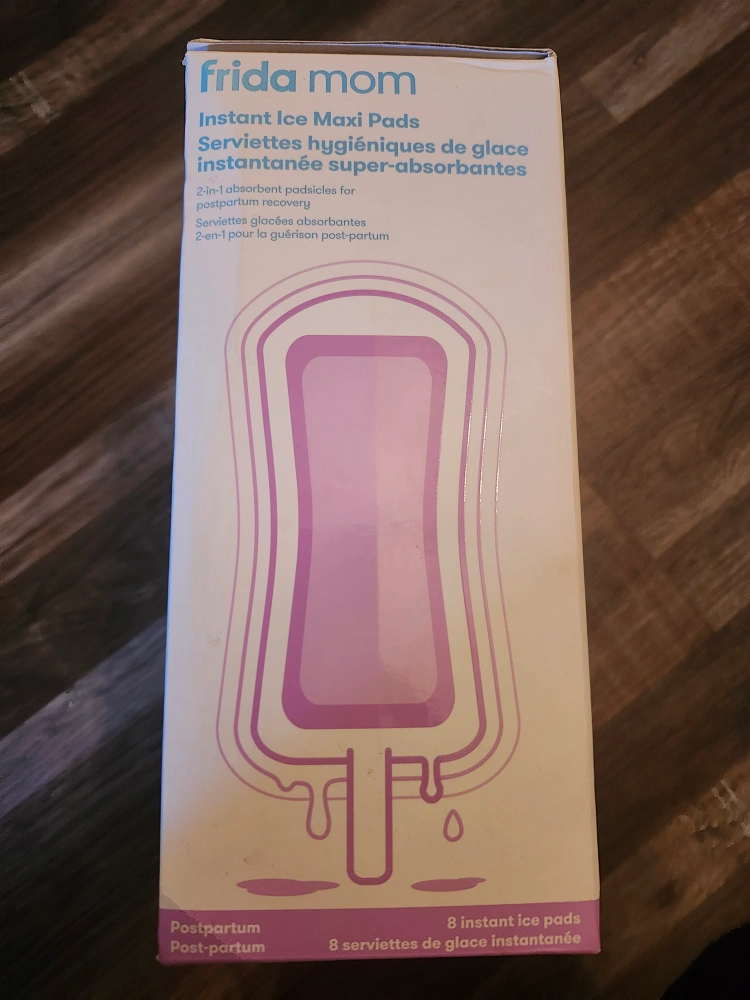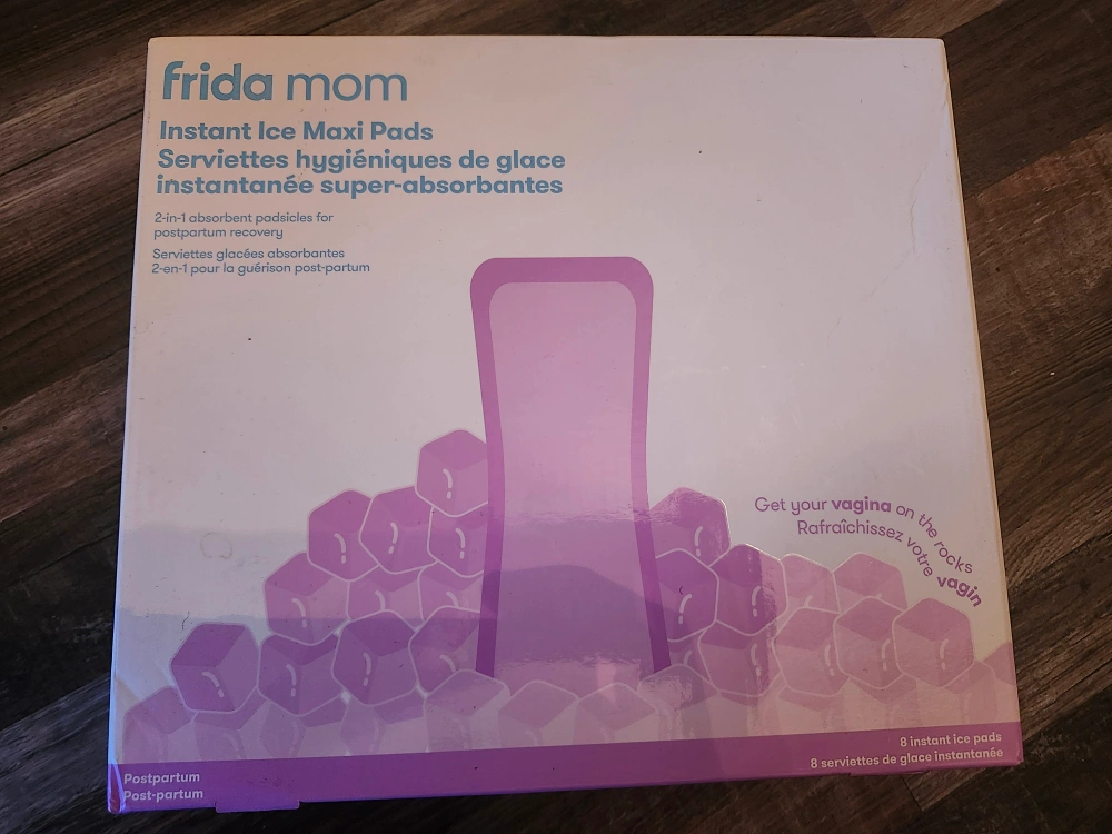 106Frida Mom Instant Ice Maxi Pads for postpartum recovery. These pads are 2-in-1 absorbent padsicles for postpartum recovery. Each box contains 8 instant ice pads.