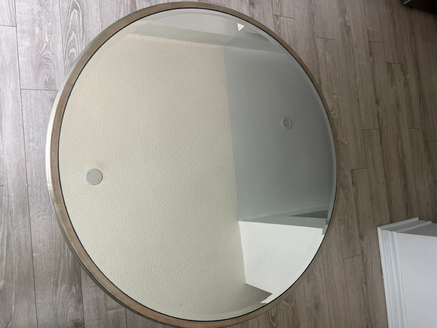 Selling a mirrored round coffee table! It's in great condition and would look lovely in any living room. The mirrored finish adds a touch of elegance to the space. It has a unique pedestal base.